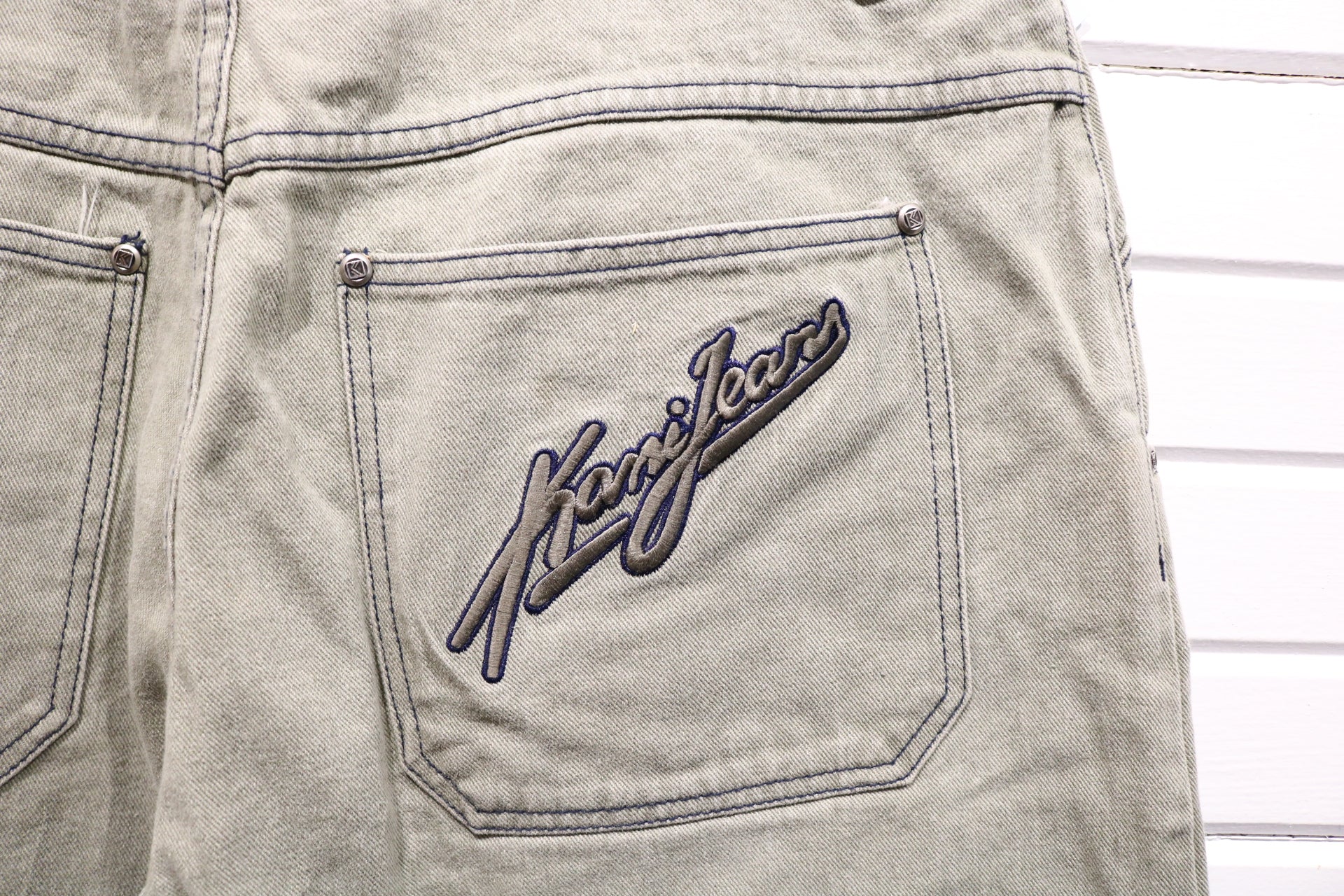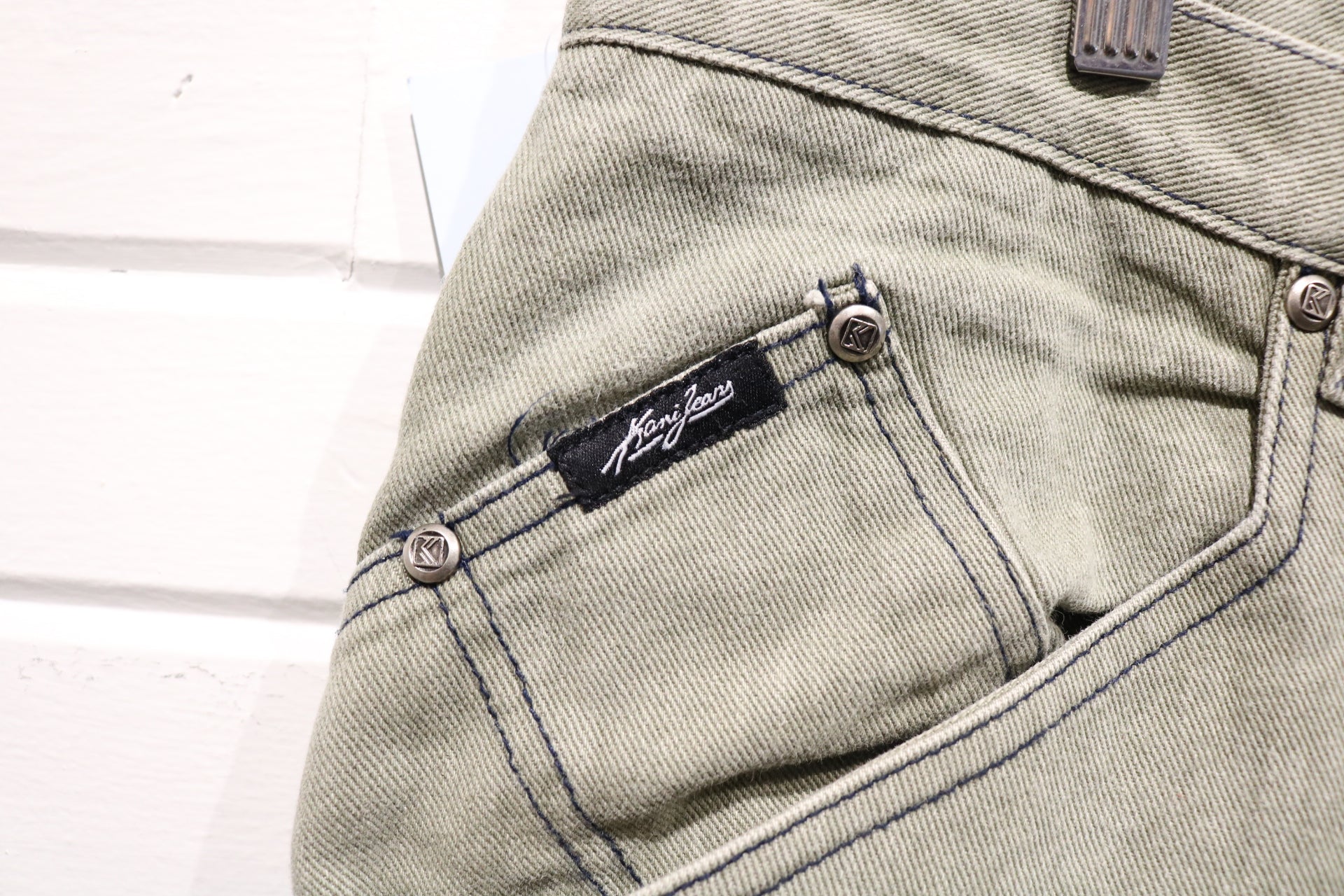 Vintage Kanji-Jeans Pants with embroidered branding on the back pocket and a relaxed straight leg fit.
