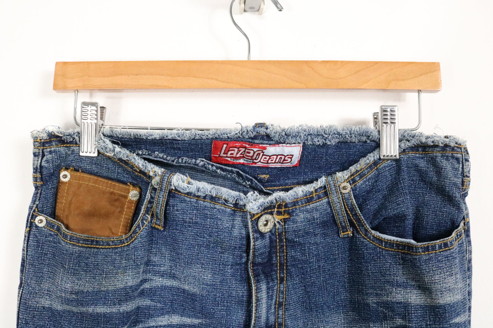 Vintage Lazerjeans Denim Pants with Distressed Edges and Western Lace-Up Sides