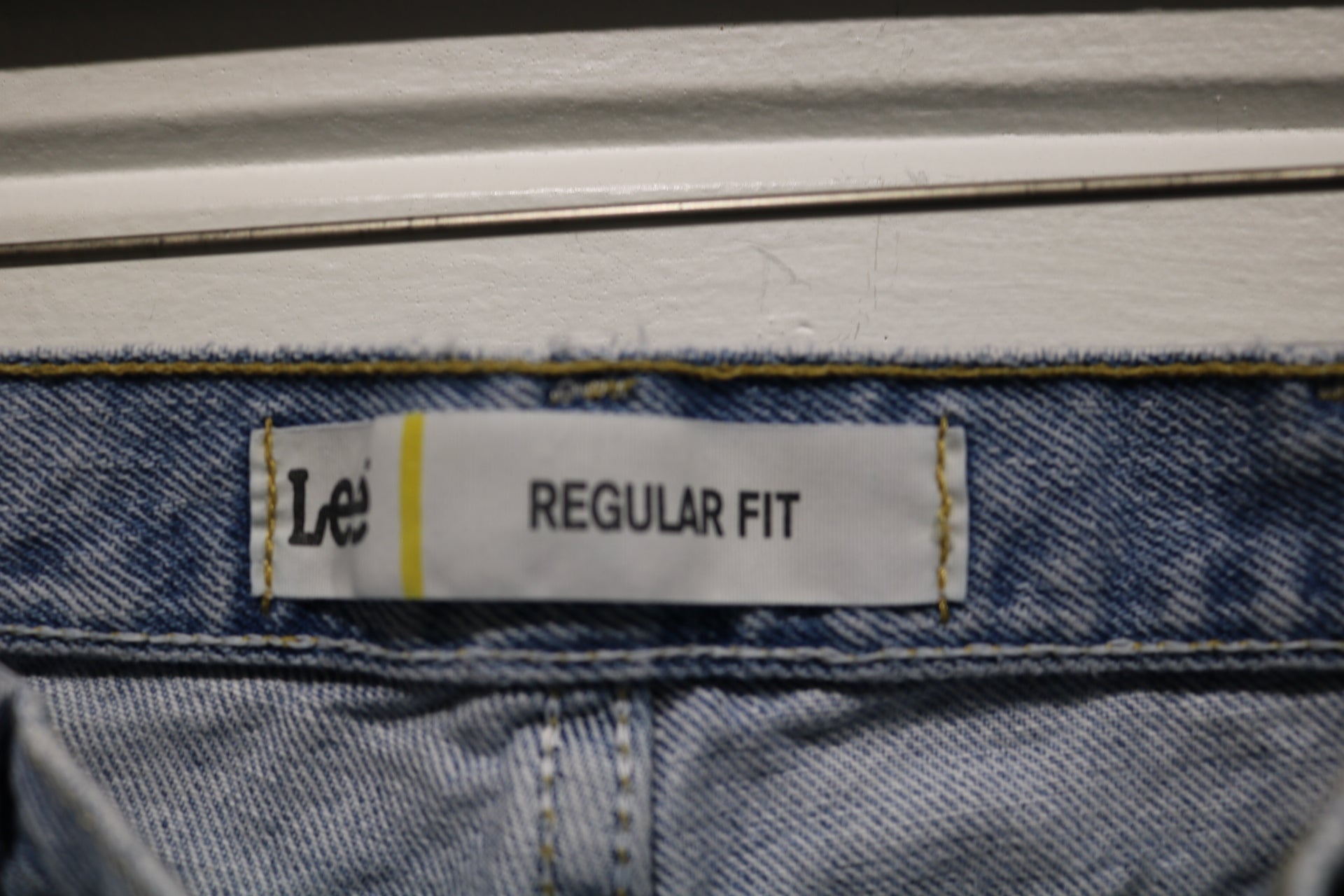 Vintage light wash Lee jeans with a regular fit and straight leg design.