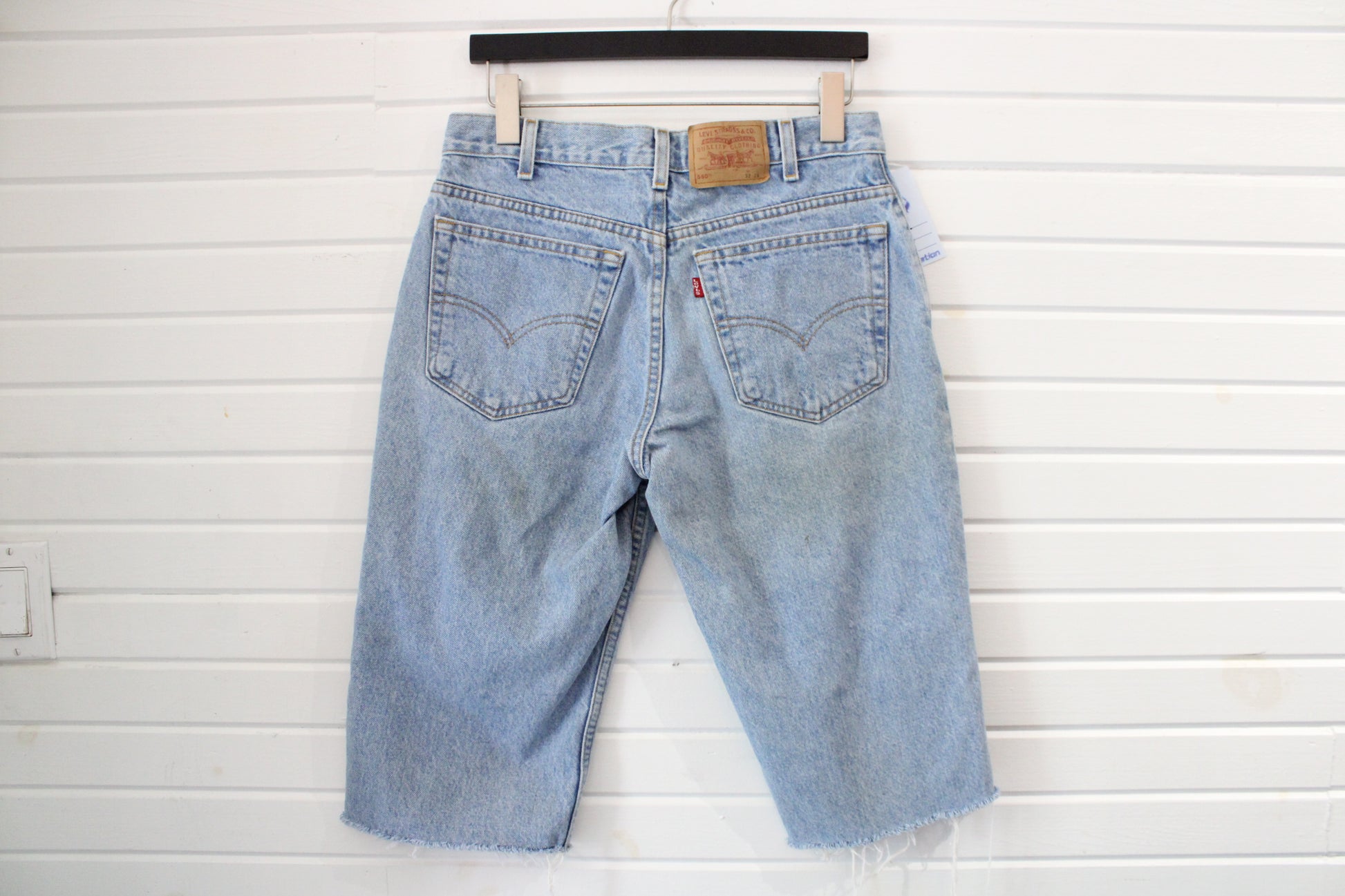 Vintage Light Wash Levi's 550 Jean Shorts With Relaxed Fit And Raw Cut Hem