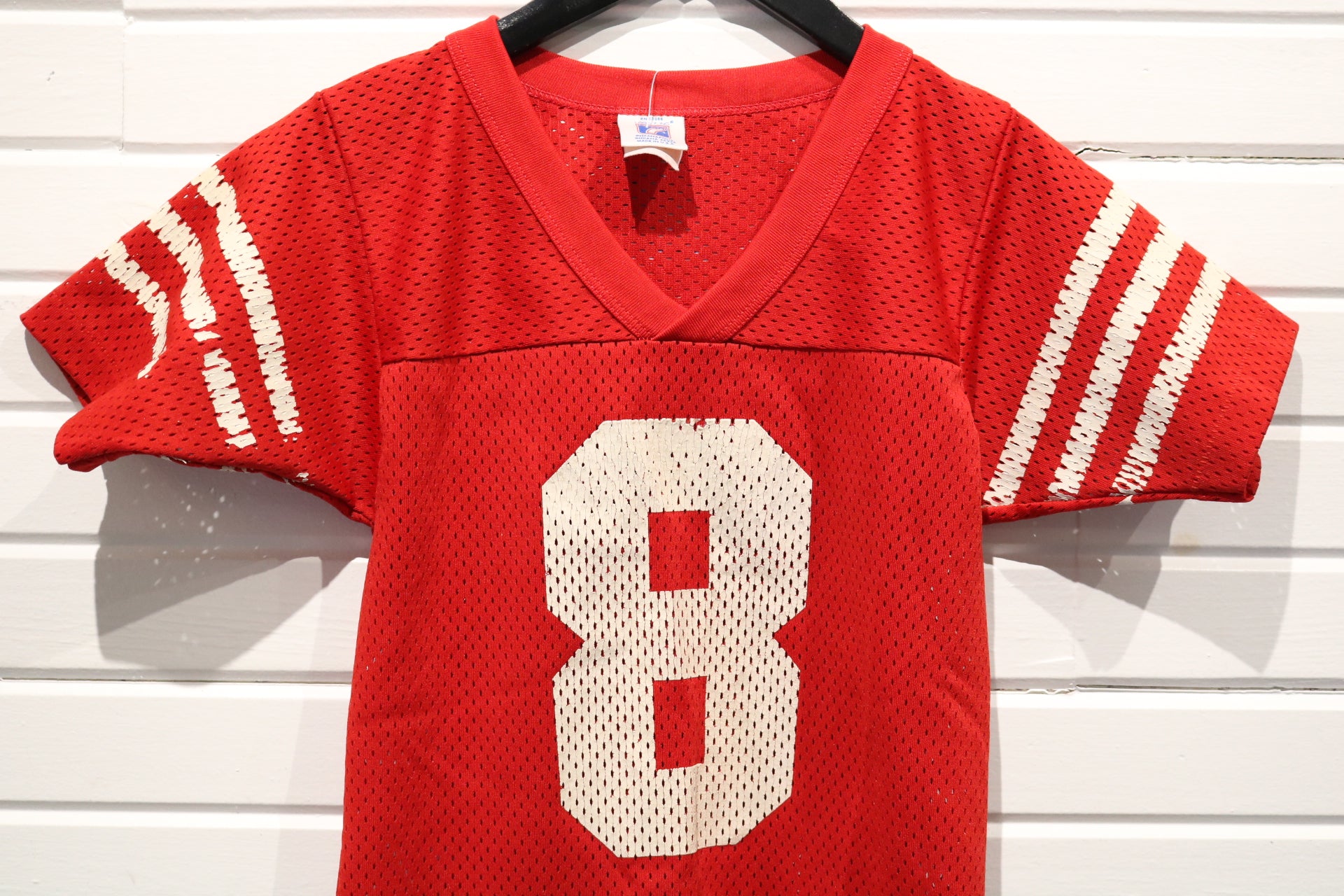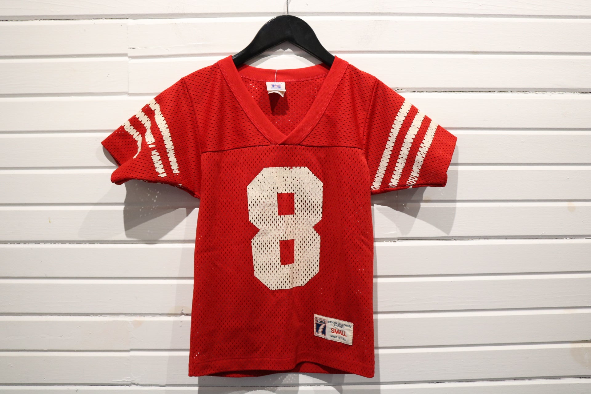 Logo-7 Mesh Jersey | Vintage 80s Red Number 8 Mesh Football Shirt | Athletic Sportswear Top