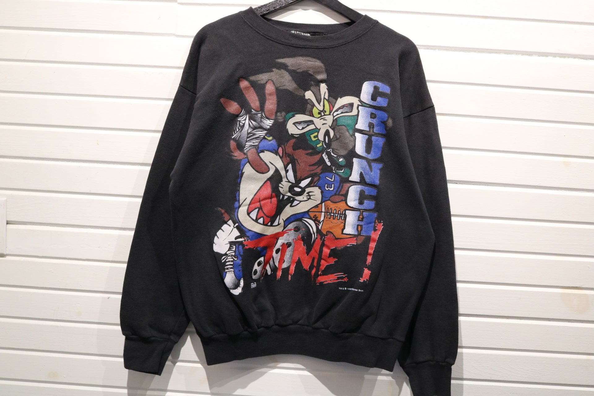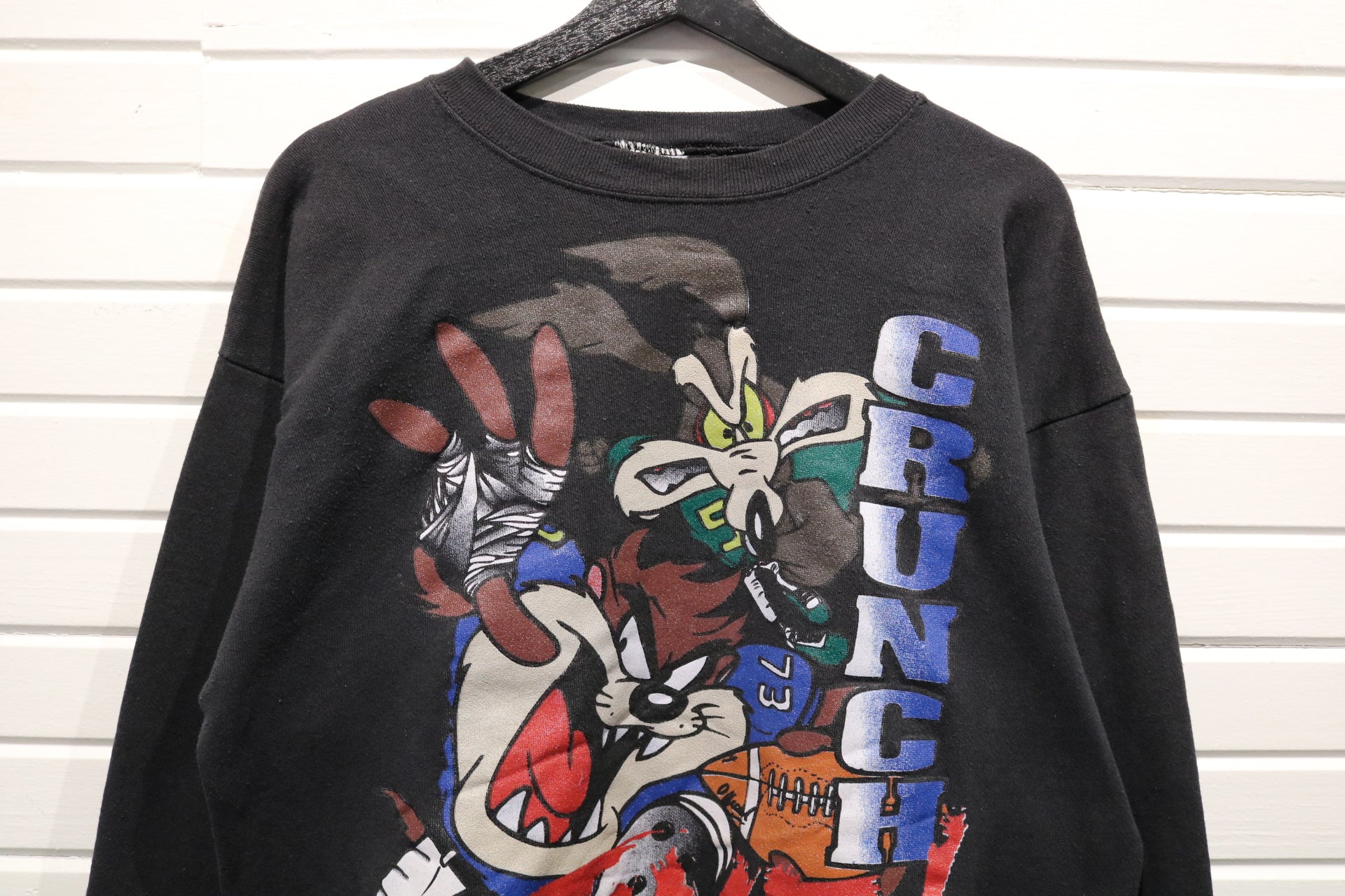 Looney-Tunes Sweatshirt | Vintage 1995 Crunch Time Graphic Crewneck | Wile E. Coyote & Taz Football Pullover
