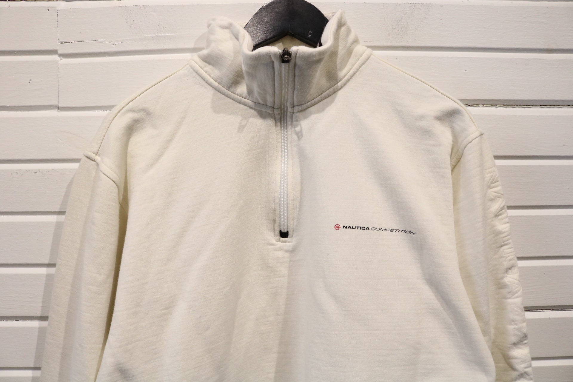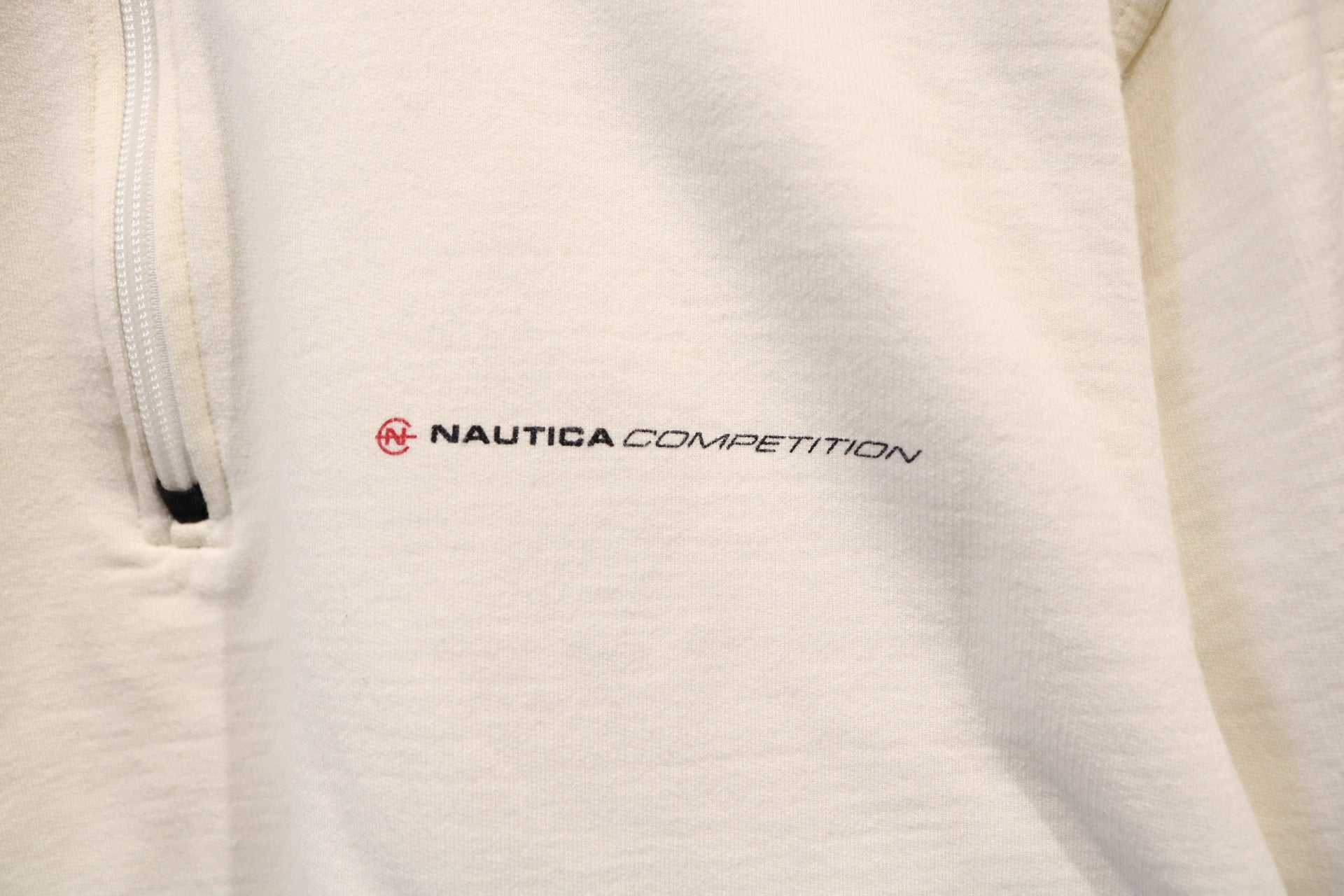 Nautica-Competition Quarter-Zip Sweatshirt | Vintage 90s Cream Pullover Top | Minimalist Embroidered Fleece