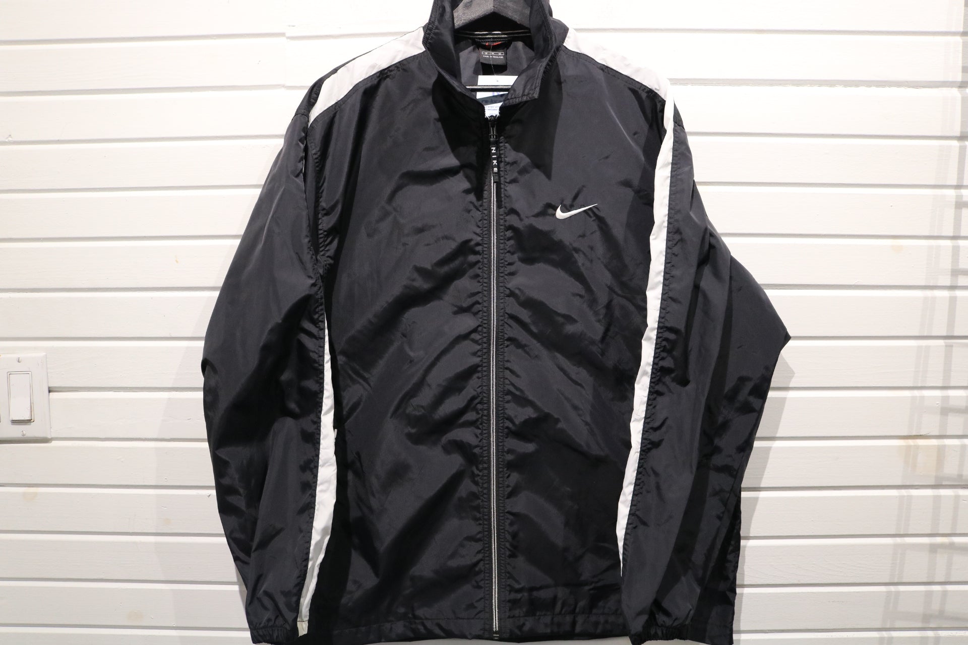 Vintage Nike Windbreaker Jacket in classic black with white stripe accents and front zip-up design