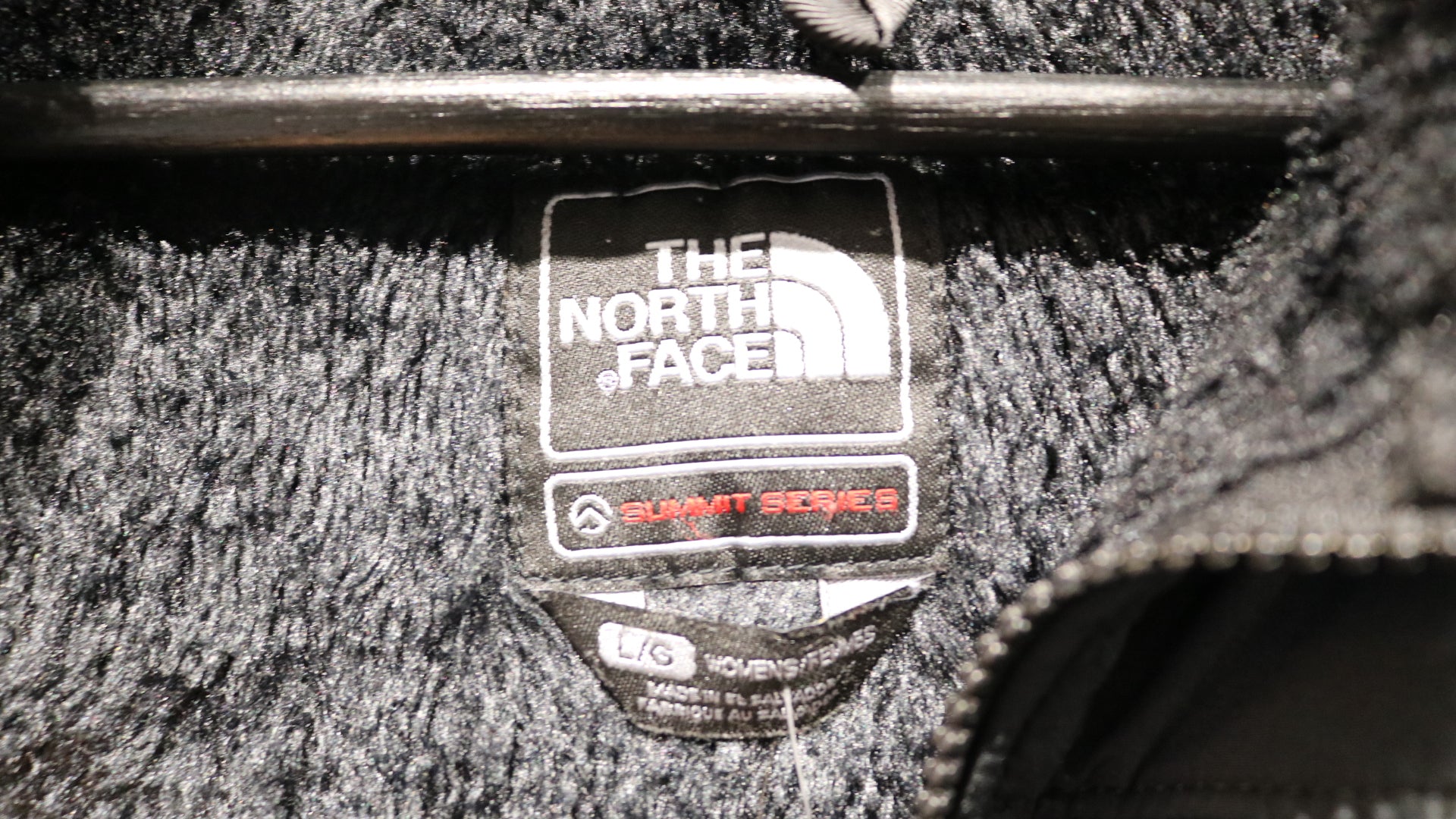 North-Face Summit-Series fleece lined outdoor jacket with zip-up front, perfect for cold weather adventures.