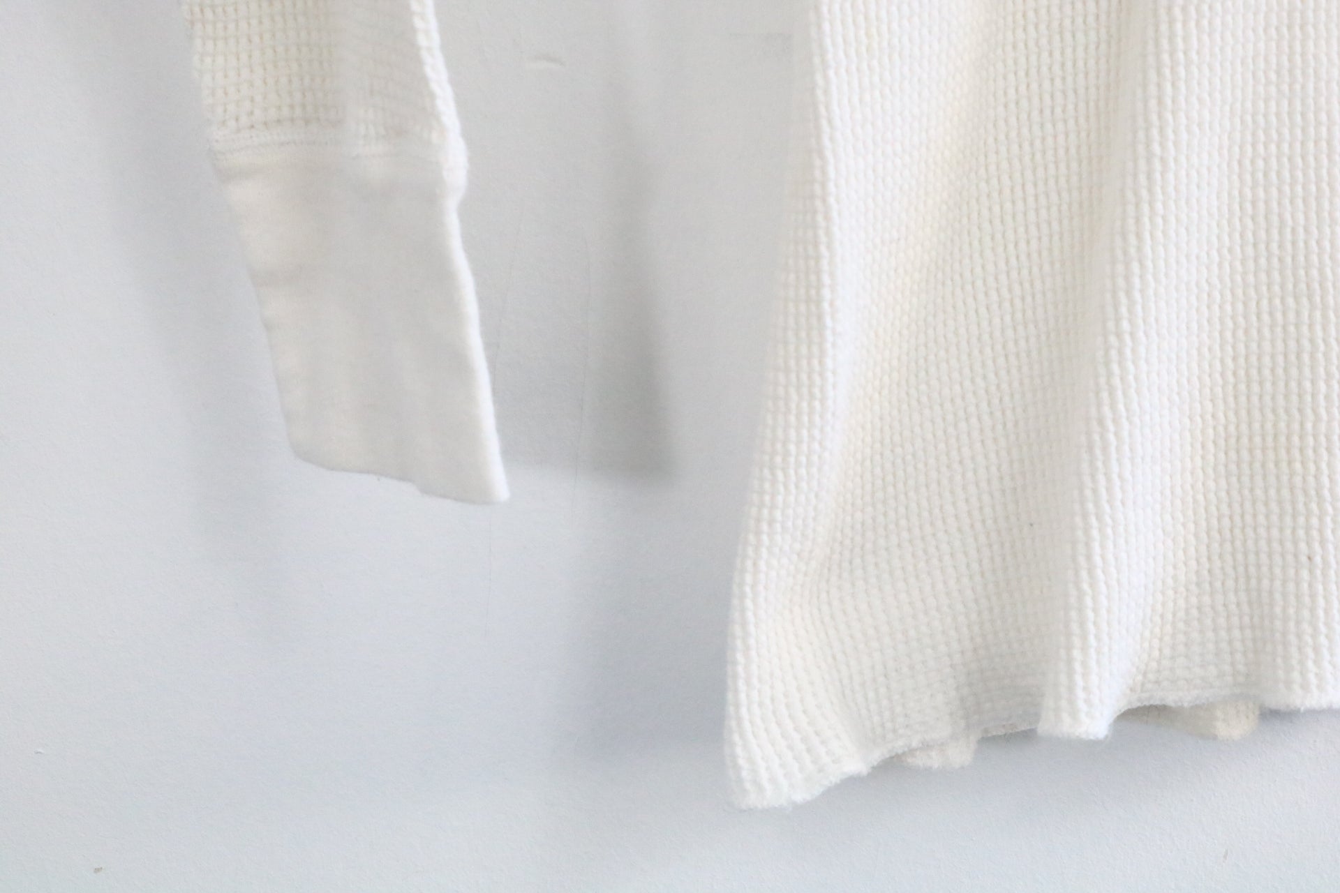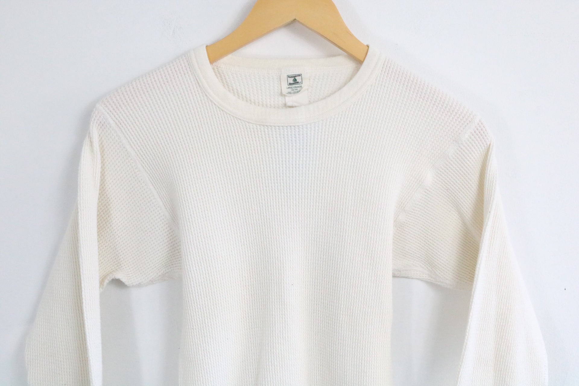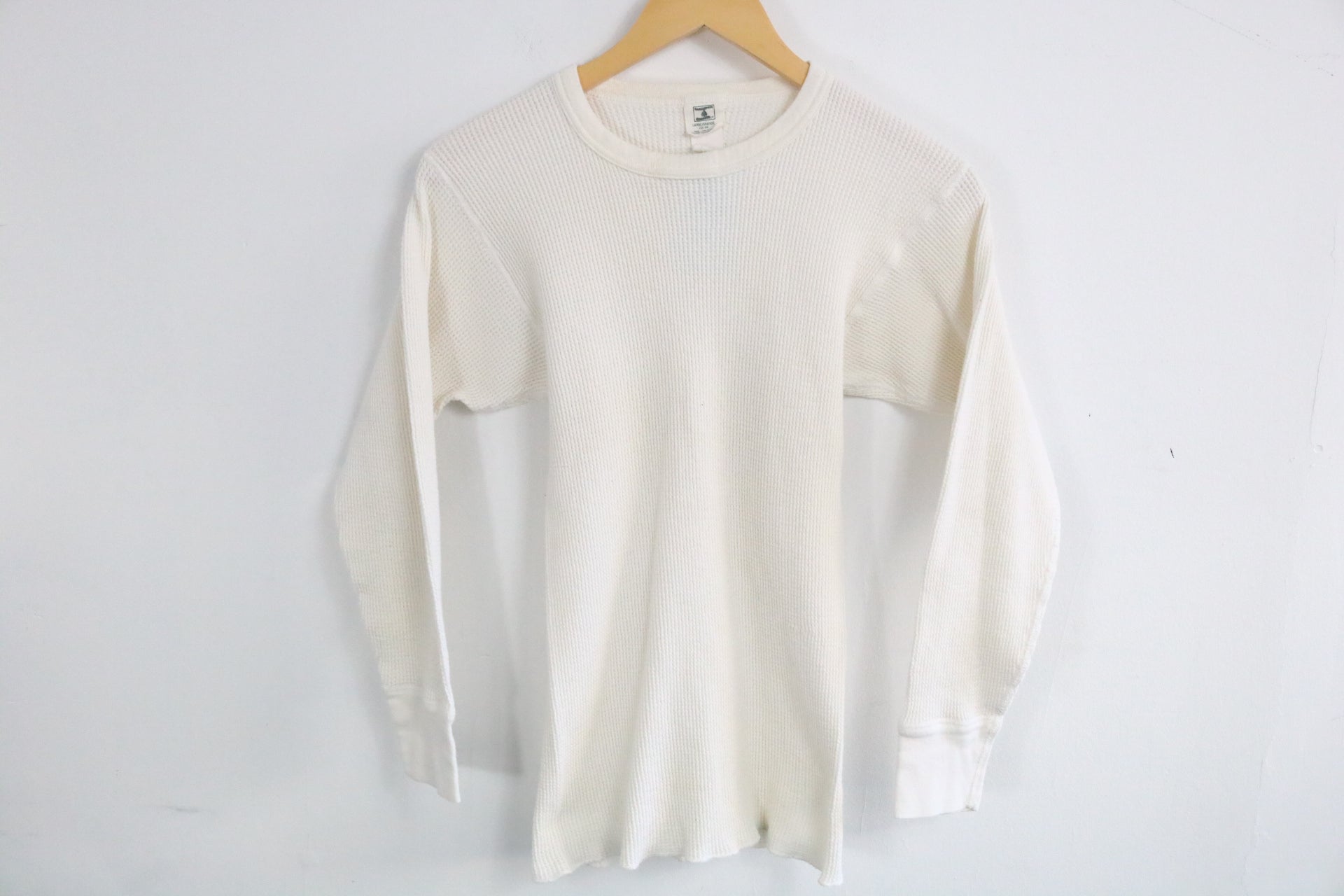 Vintage thermal waffle-knit shirt in a soft cream color with classic long sleeve design.