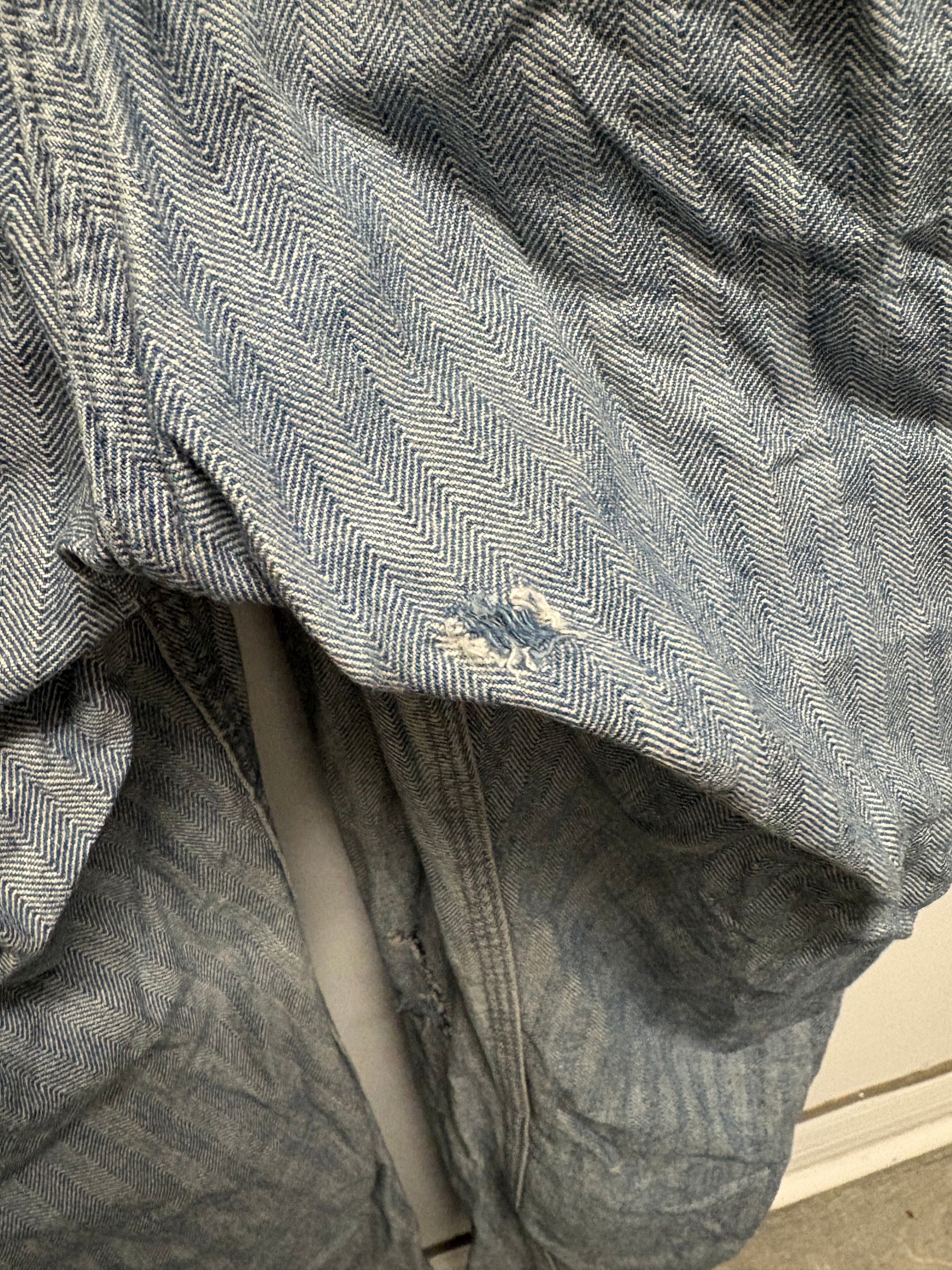 FLAWS: Visible fraying and holes on sleeve cuff and leg, general wear on fabric - Please See Pictures For Any Wear/Tear - If There Are No Pictures Of Specific Flaws, The Item Is FLAWLESS