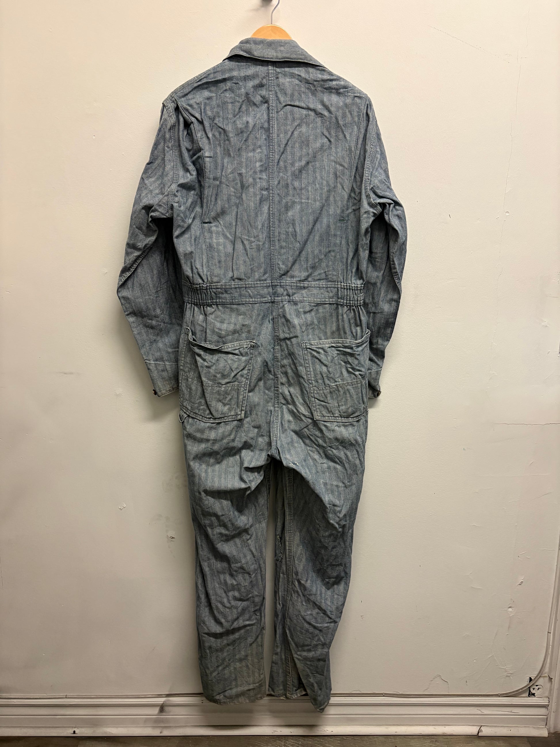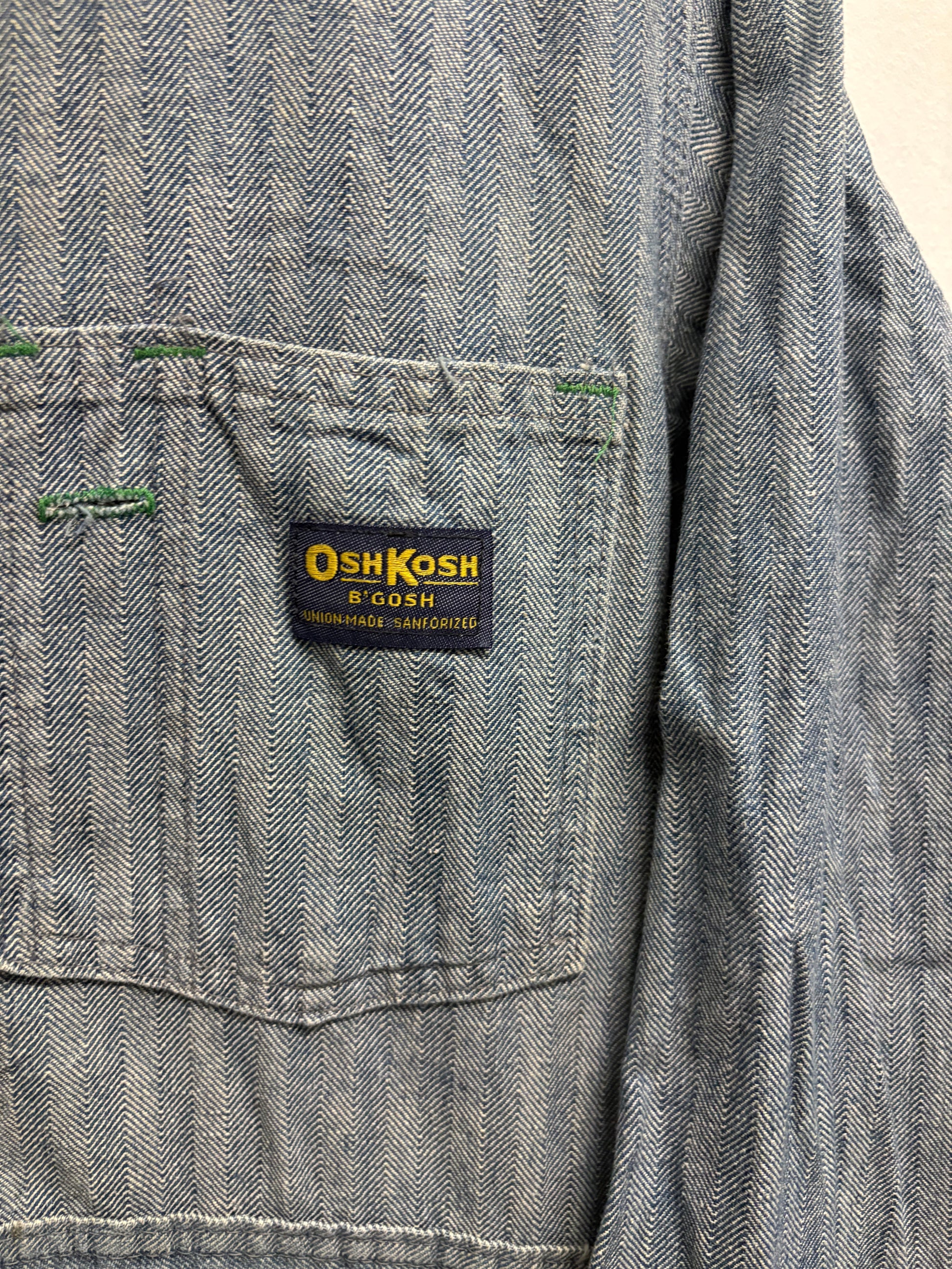 OshKosh-B’Gosh Coveralls | Vintage Herringbone Striped Denim Workwear Jumpsuit | Classic Utility One Piece