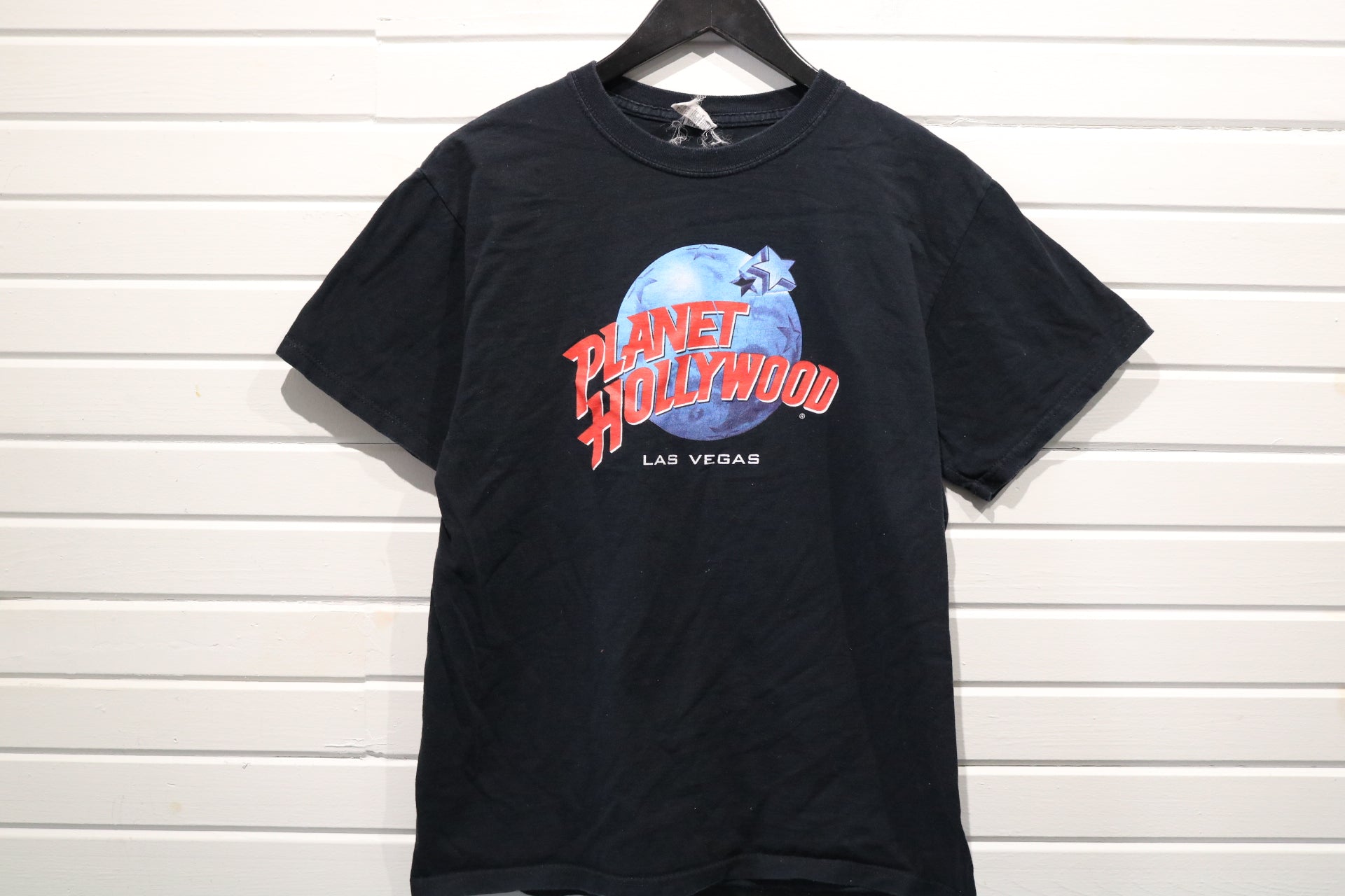 Classic Planet-Hollywood Las-Vegas graphic t-shirt with bold logo and retro style.