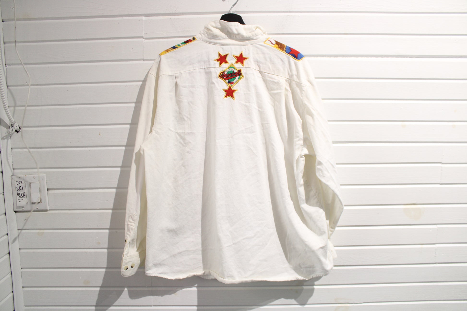 Quacker-Factory Baseball Shirt | Vintage 1990s Sports-Themed Button-Up Shirt | Novelty Embroidered Casual Wear