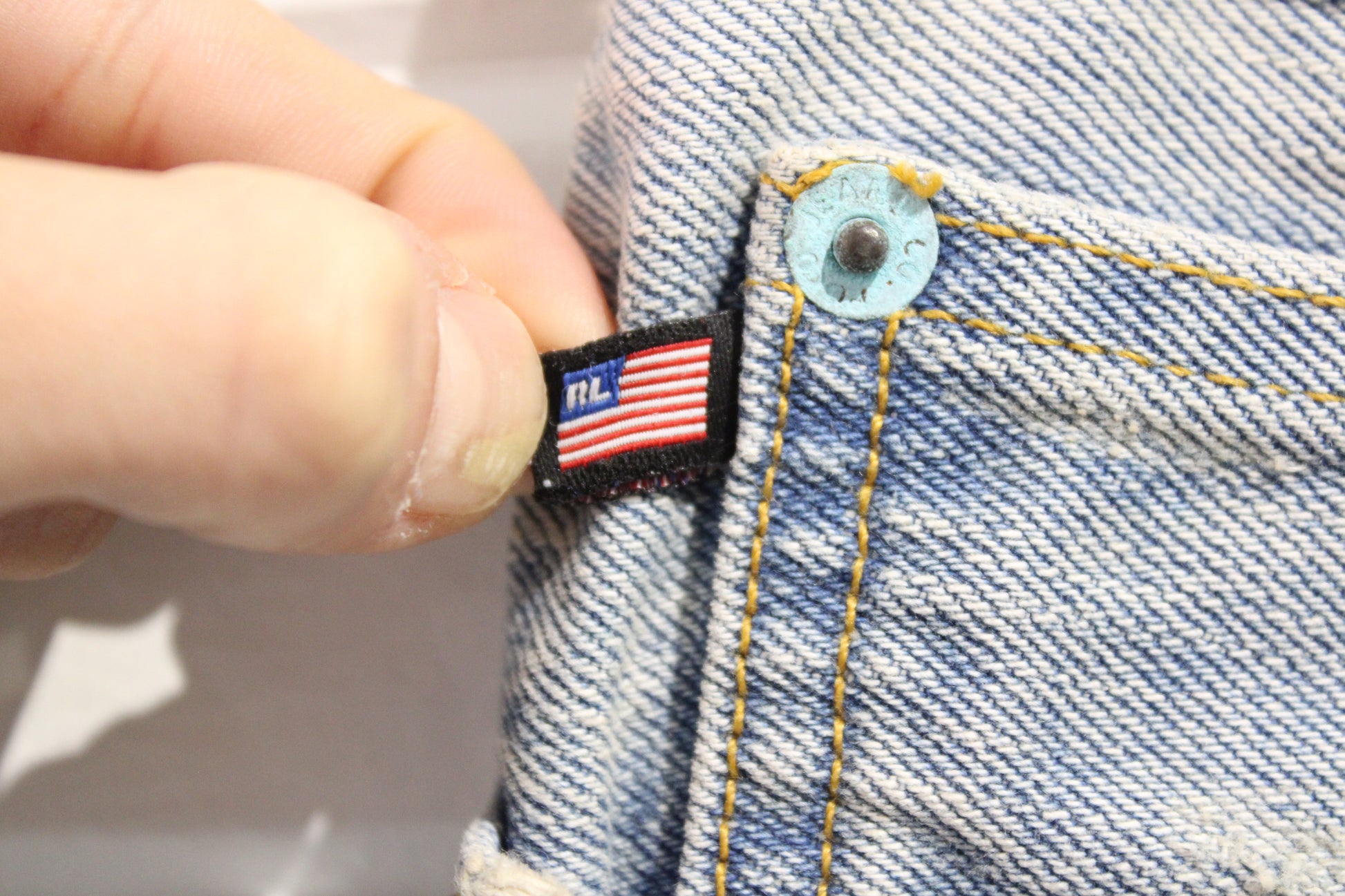 Vintage Ralph-Lauren Polo Kelly Jeans in a light wash denim with classic straight fit styling and signature branding.