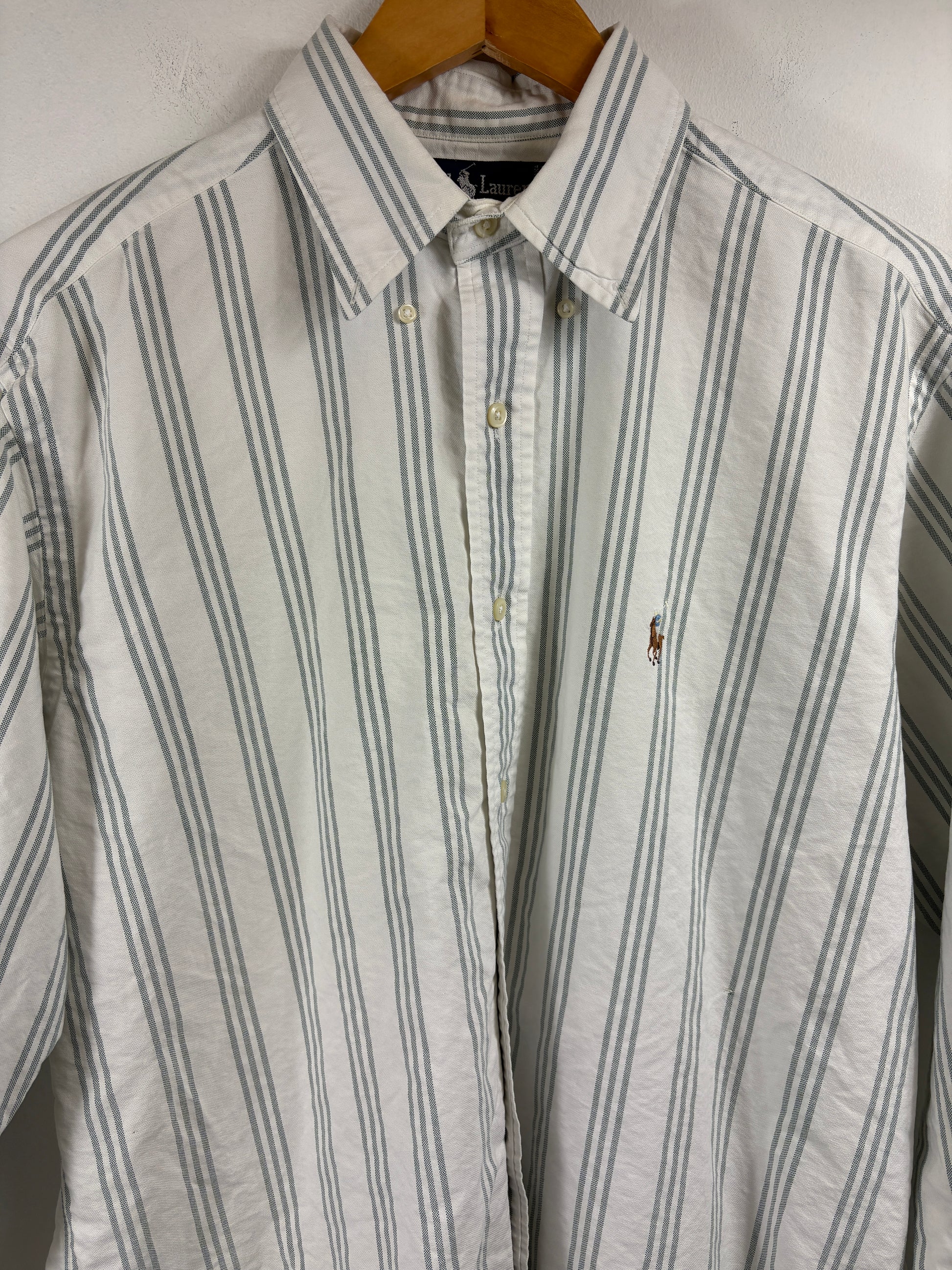 Ralph-Lauren Striped Button-Up Shirt | Vintage Classic Pinstripe Long Sleeve Shirt | Preppy Mens Casualwear