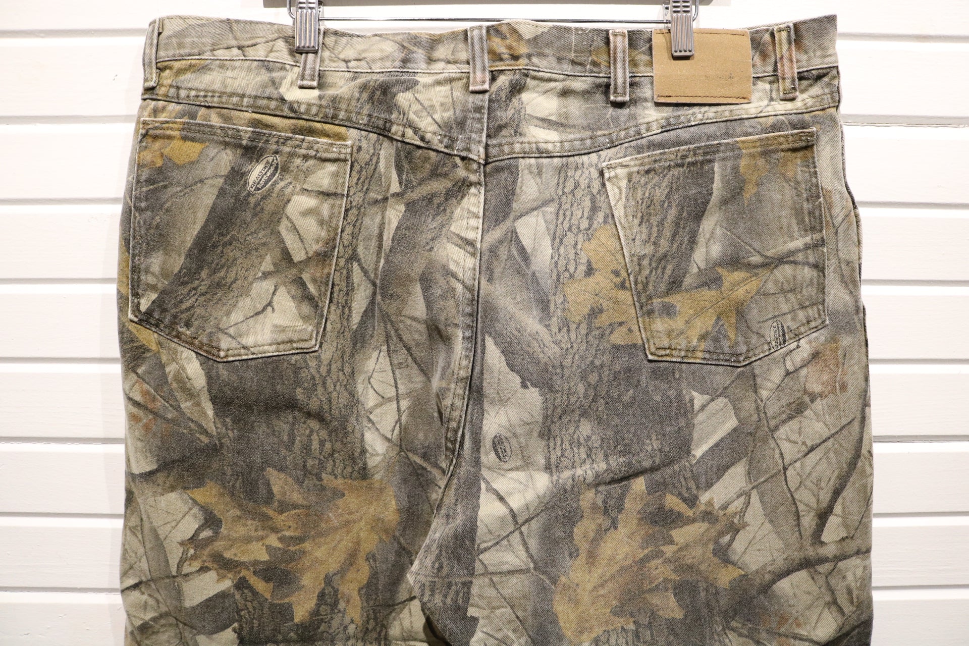 Real-Tree Camouflage Pants | Vintage Outdoor Workwear Leaf Print Trousers | Rugged Hunting Gear