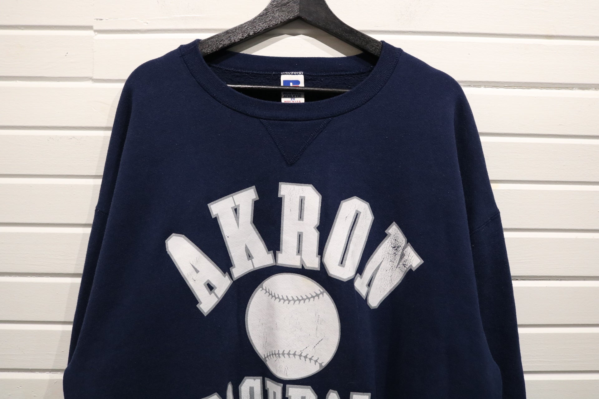 Russell-Athletic Akron baseball crewneck sweater with bold front print and retro athletic style.