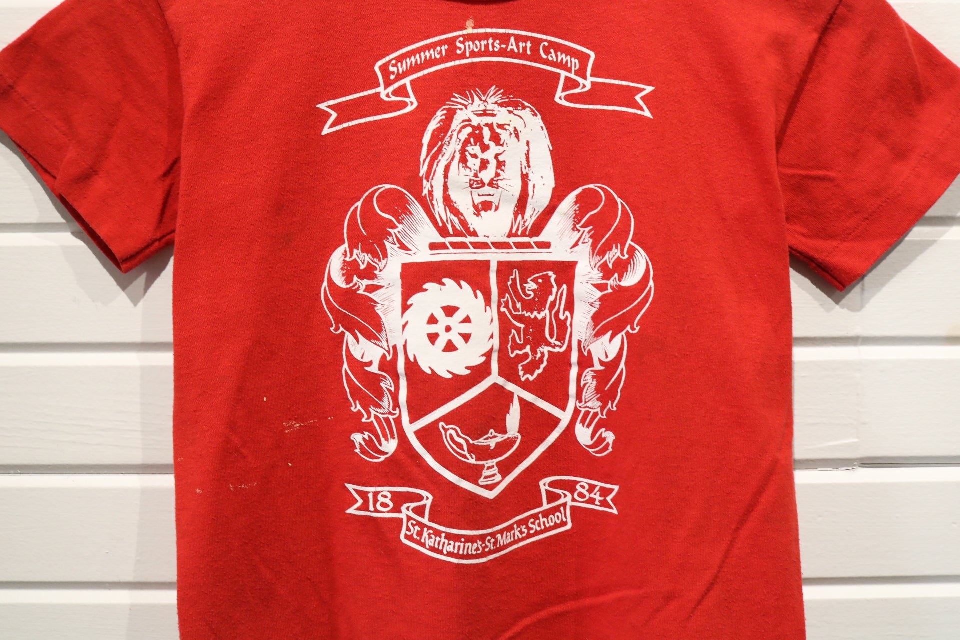 Vintage Summer Sports-Art Camp T-shirt featuring the St-Katharines-St-Marks School crest and lion graphic.