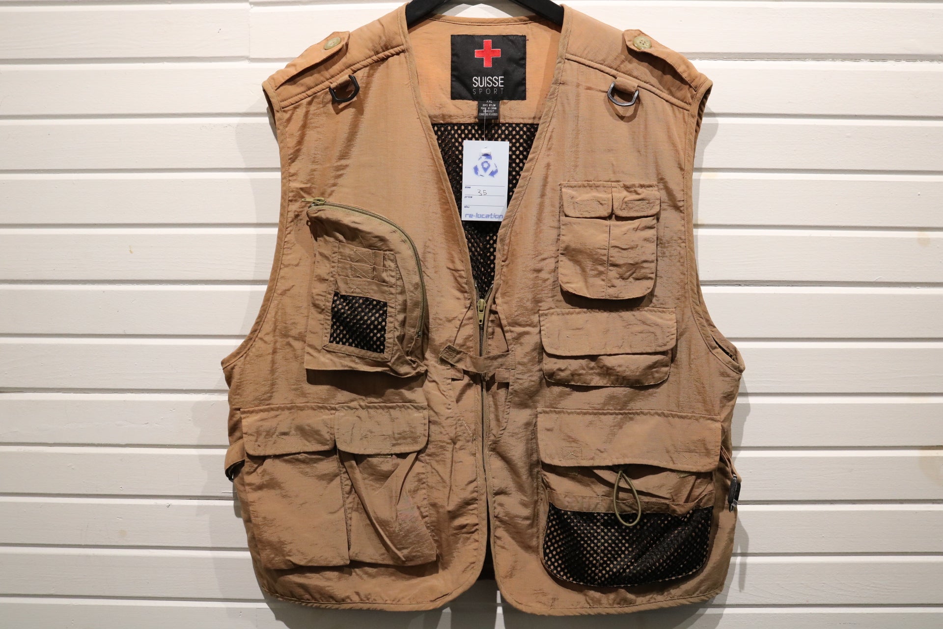 Suisse-Sport Fishing Vest | Vintage Outdoor Utility Mesh Pocket Gear Vest | Tan Adventure Outerwear