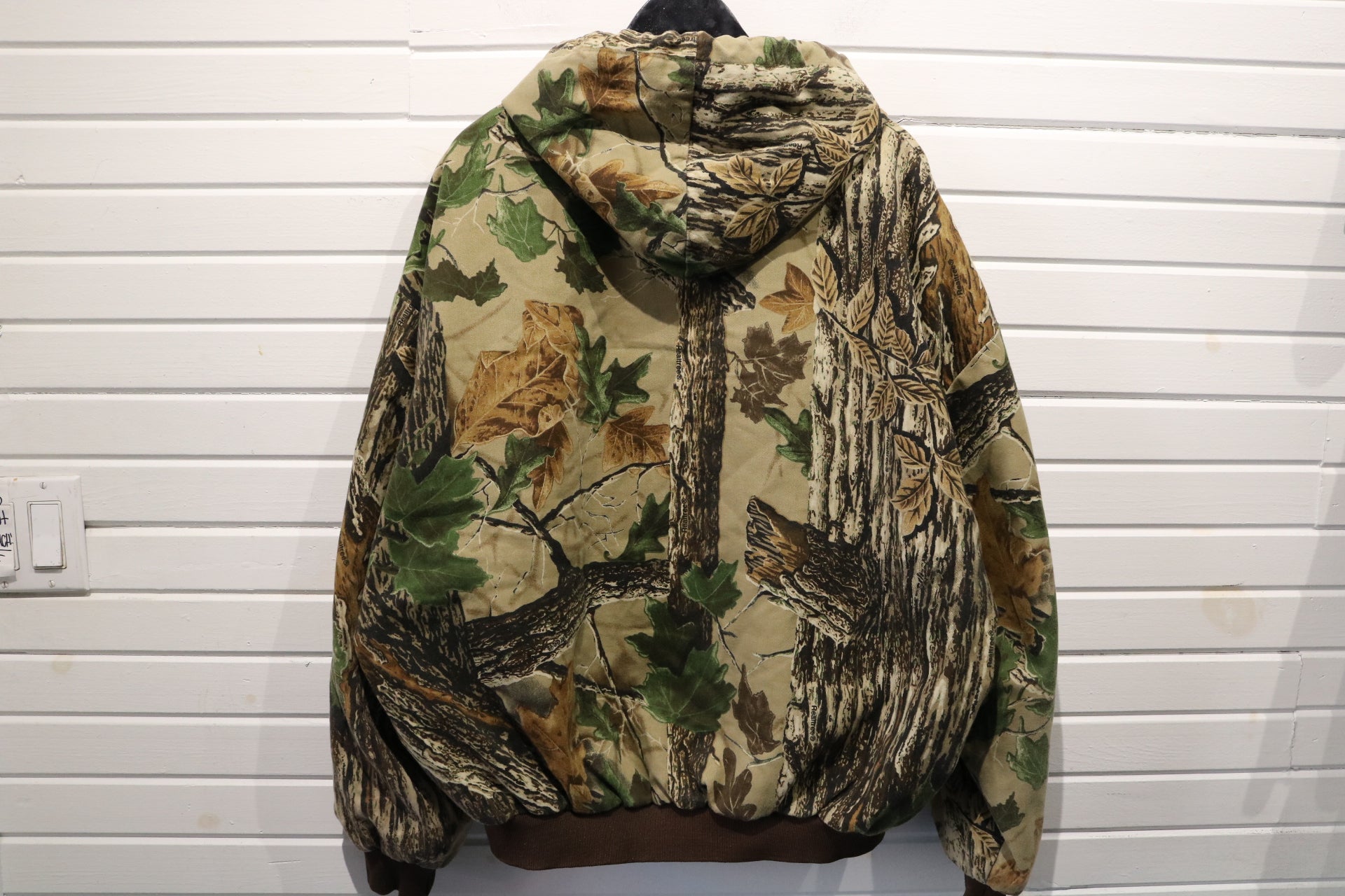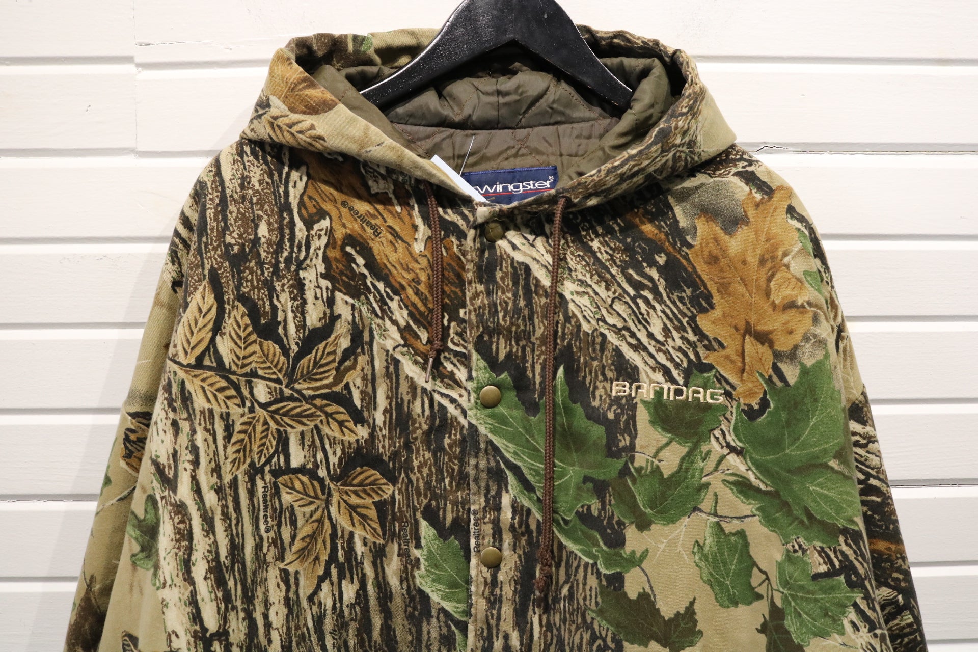 Swingster Woodland Camo Hooded Jacket | Vintage 90s Leaf Print Outdoor Coat | Realtree Style Hunting Outerwear