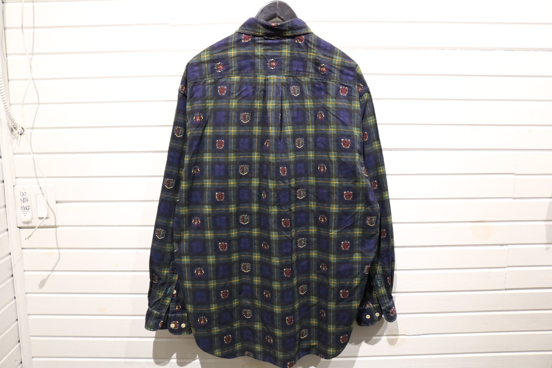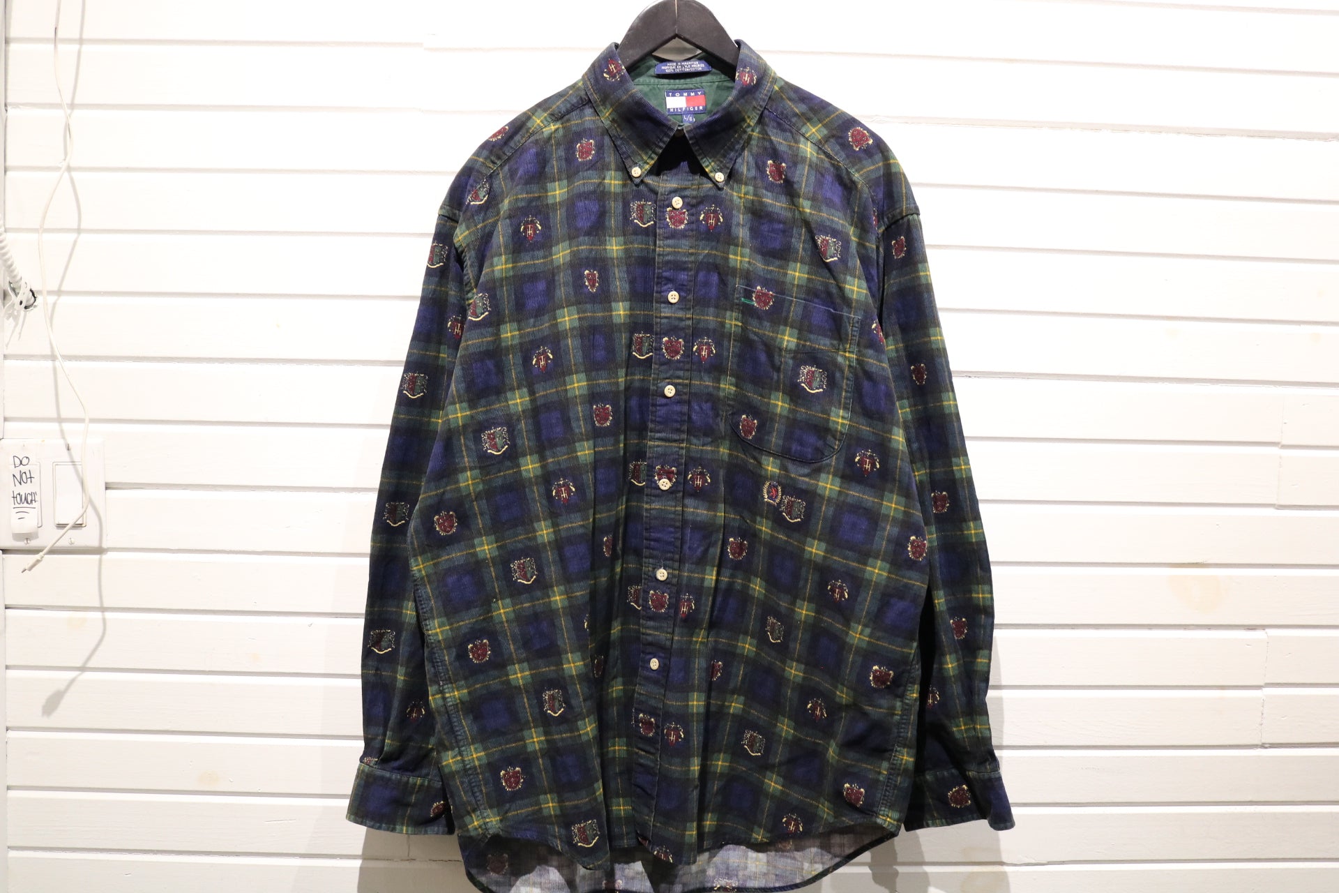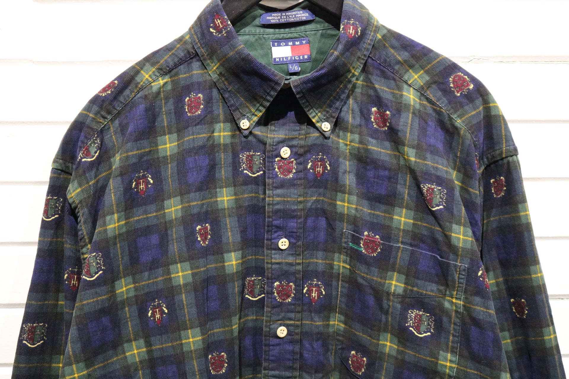 Tommy-Hilfiger Plaid Button-Up Shirt | Vintage 1990s Crest Embroidered Flannel Shirt | Men's Classic Preppy Wear