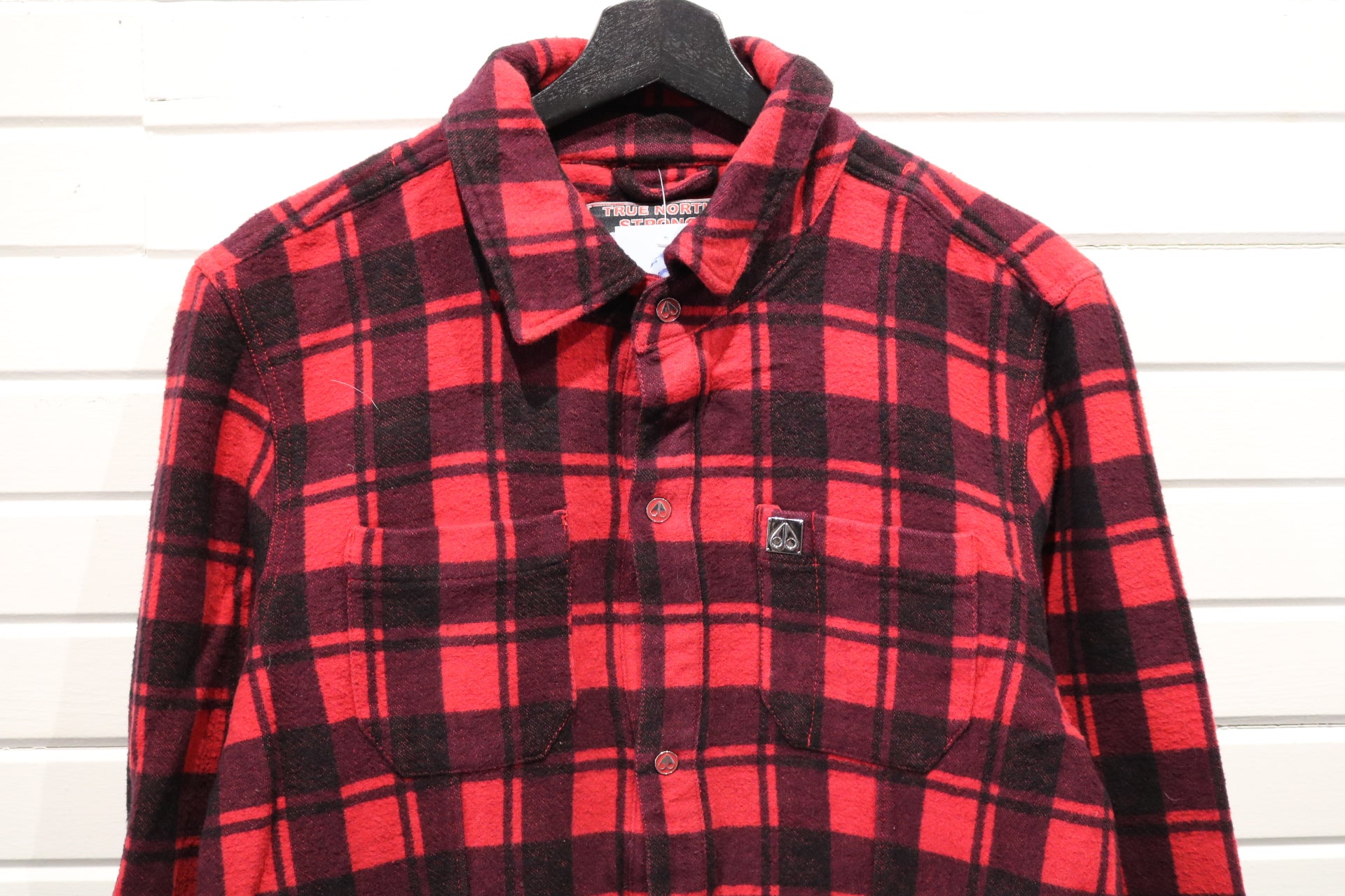 True-North Strong Plaid Button-Up Shirt | Vintage Red-Black Flannel Lumberjack Jacket | Outdoor Layering Shirt