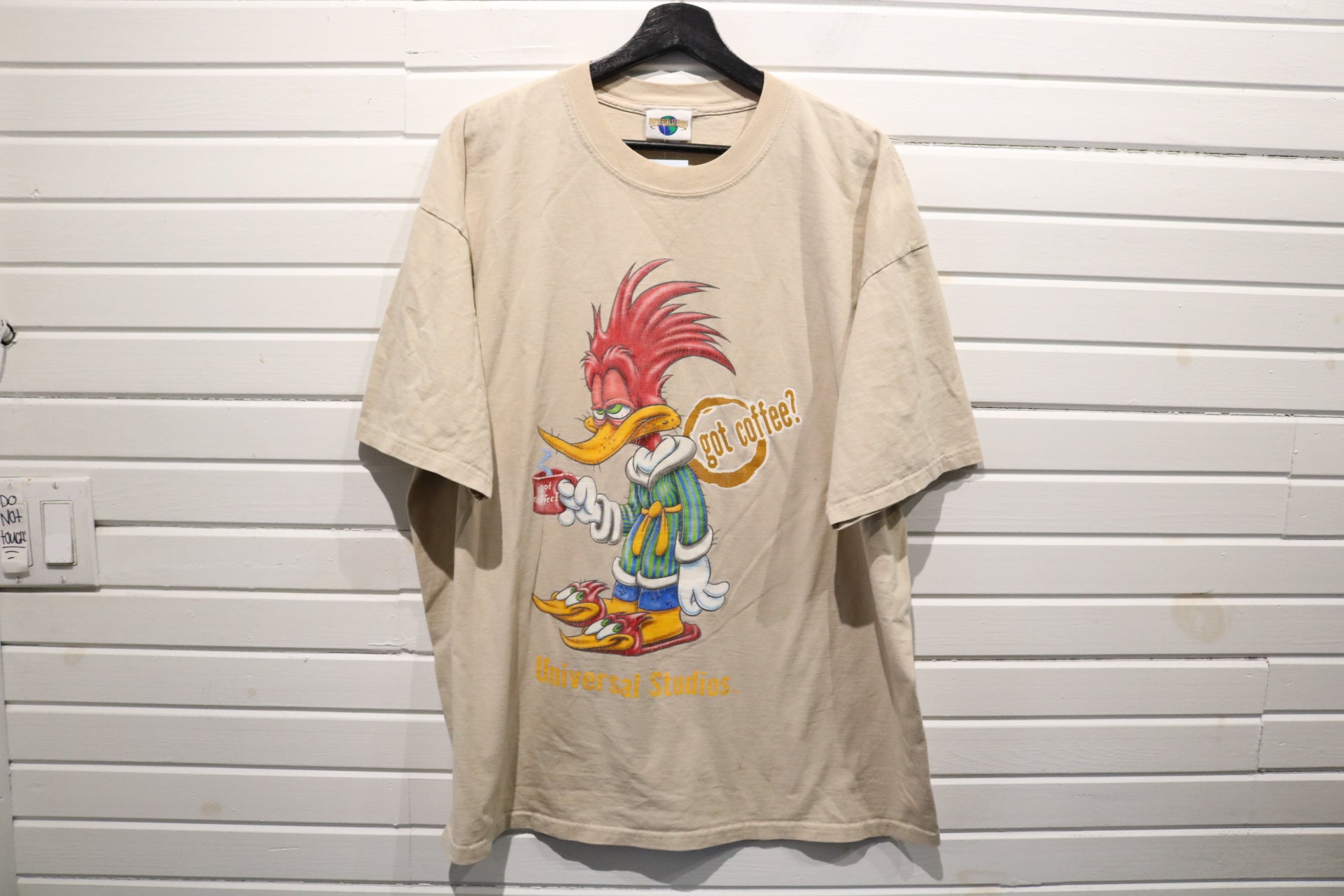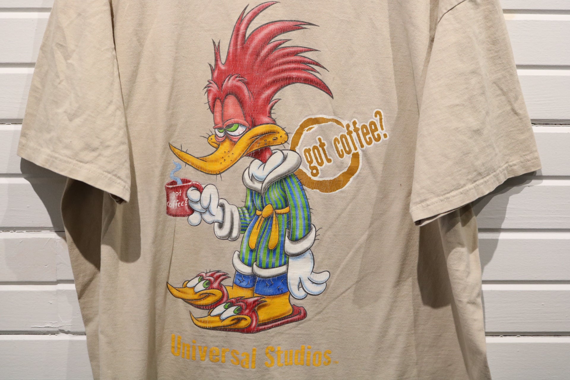 Universal-Studios Woody Woodpecker T-Shirt | Vintage 1990s Got Coffee Graphic Tee | Classic Cartoon Clothing