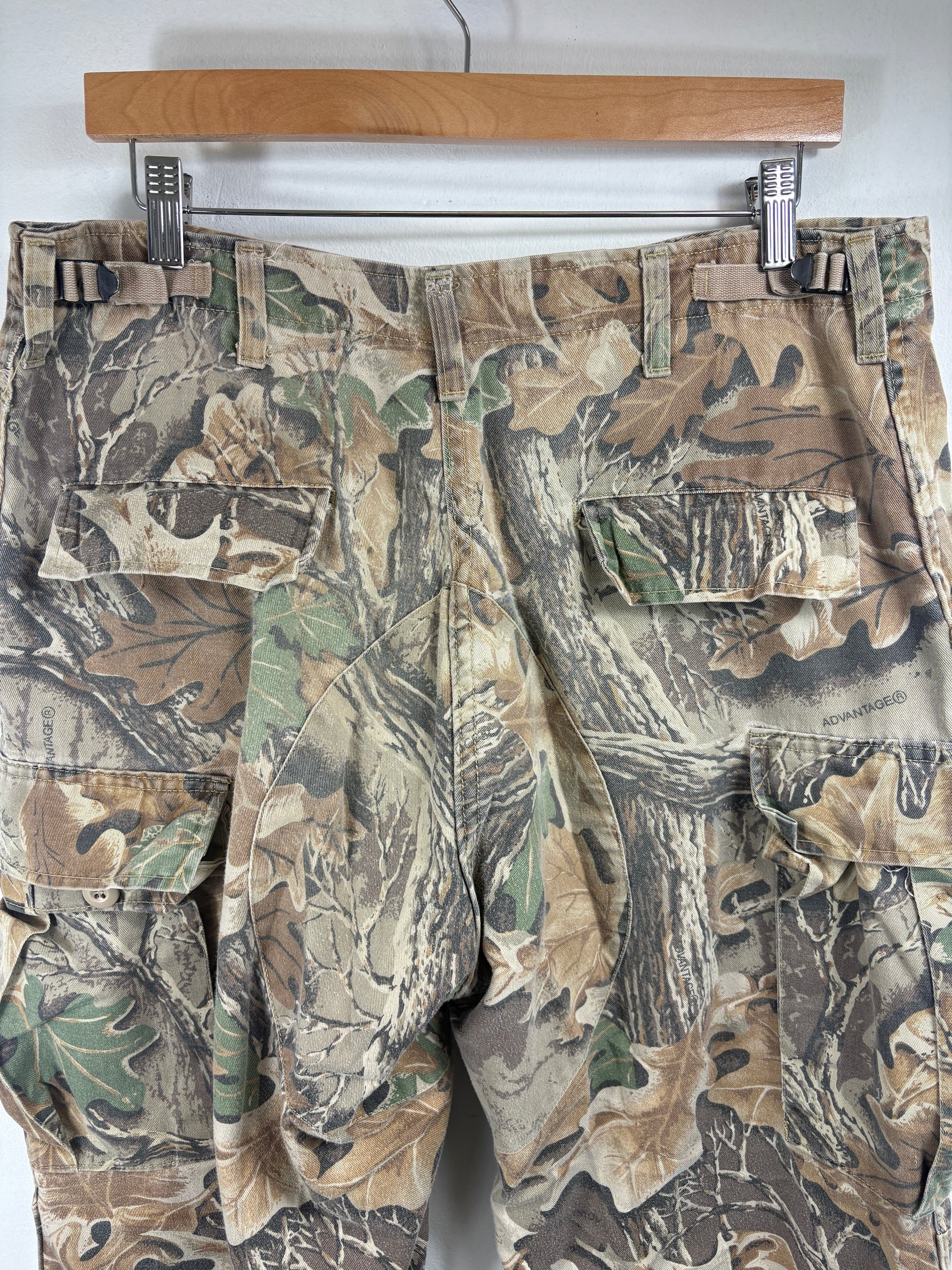 Vintage Advantage Camouflage Cargo Pants | 90s Outdoor Camo Hunting Trousers | Woodland Leaf Pattern Utility Bottoms