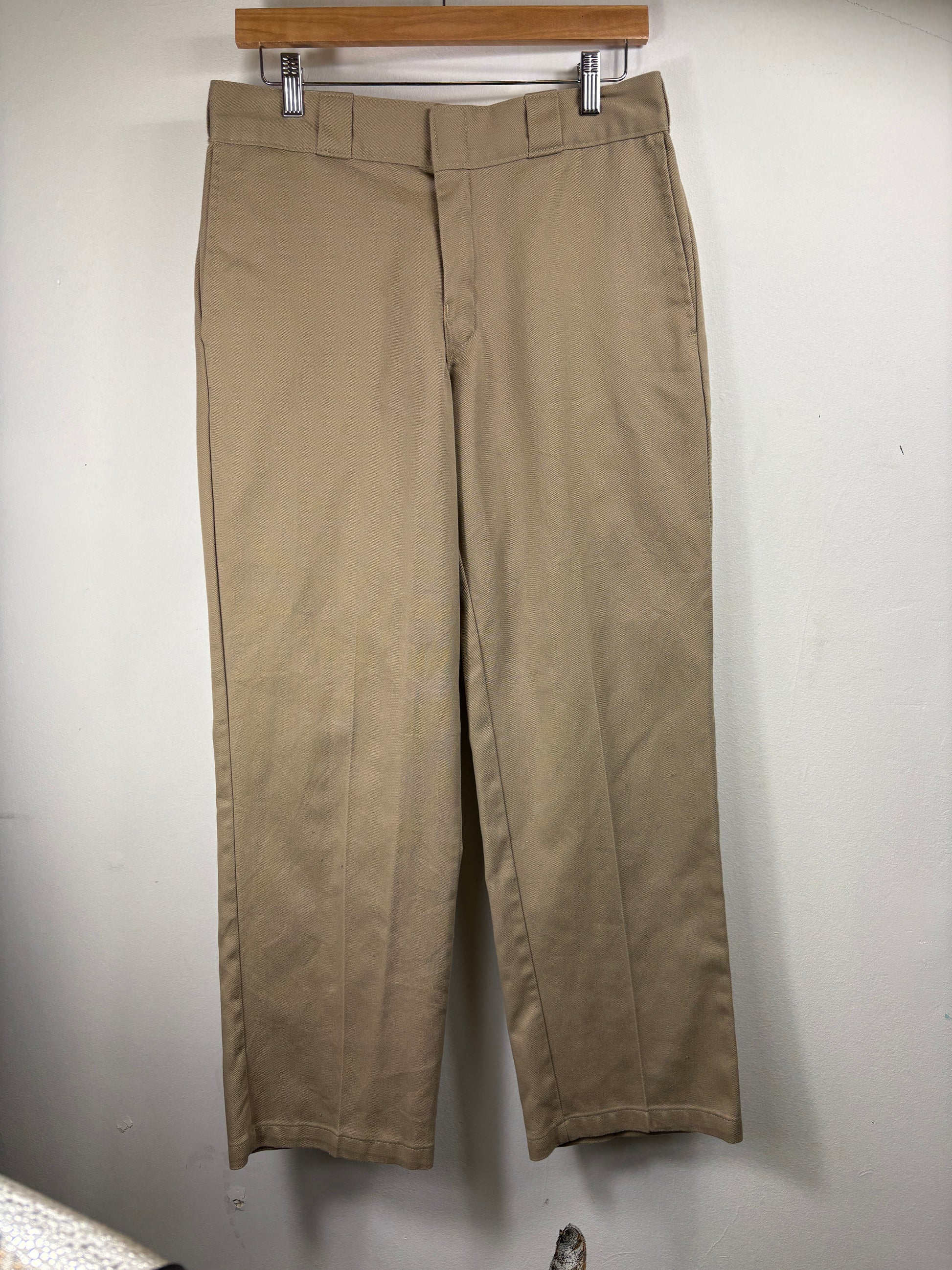 Vintage Dickies work pants in a sturdy khaki twill, featuring a straight leg and reinforced belt loops.
