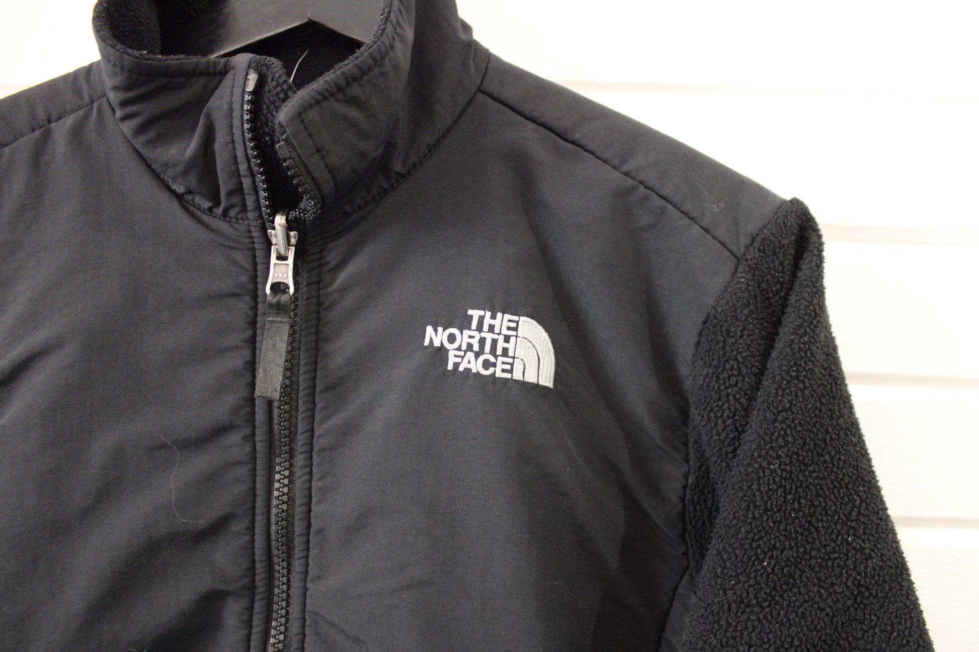 Classic North-Face Denali fleece with nylon panel detailing and zip-up front.