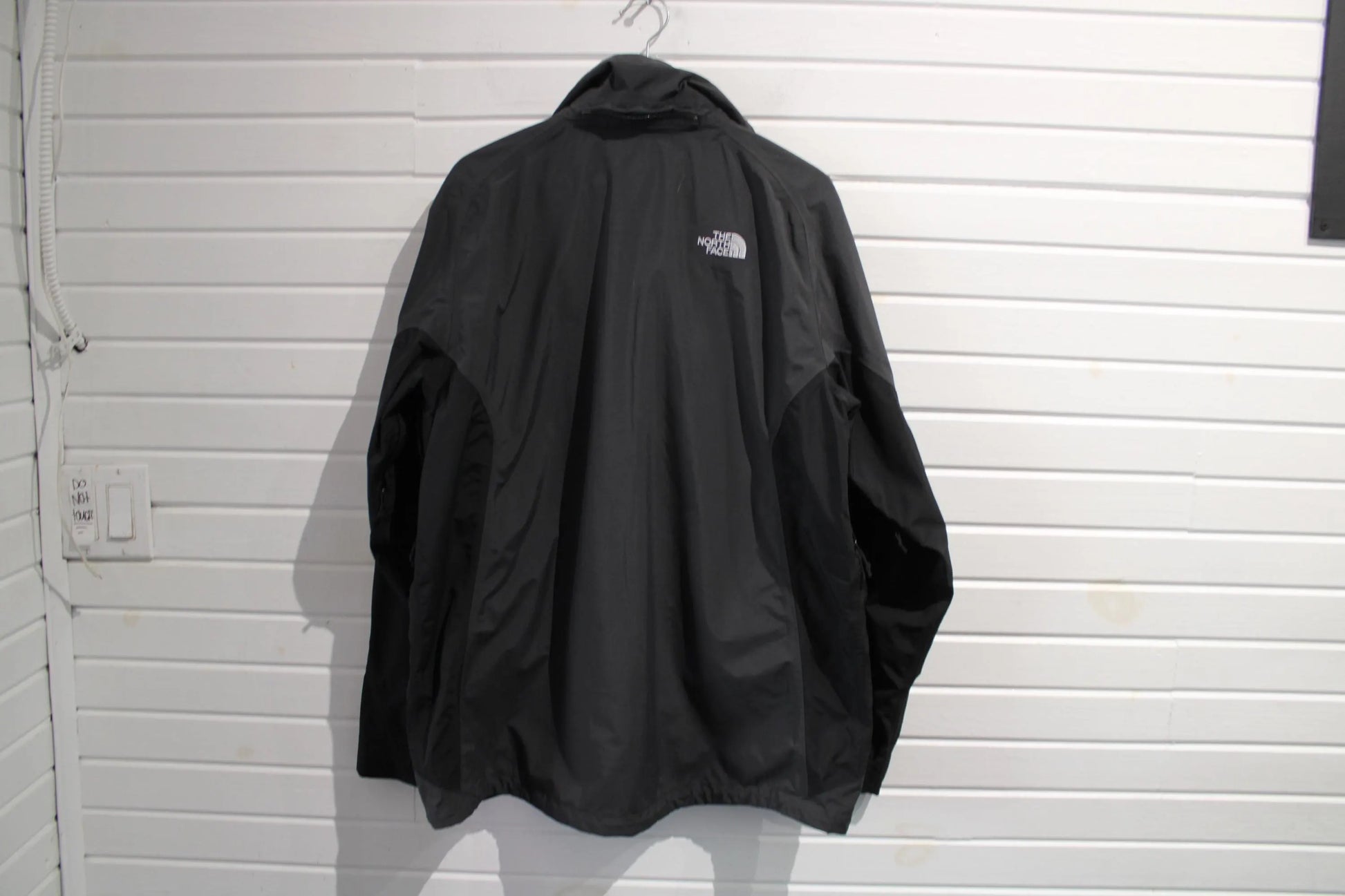 North-Face HyVent waterproof black jacket, perfect for outdoor activities and everyday wear.