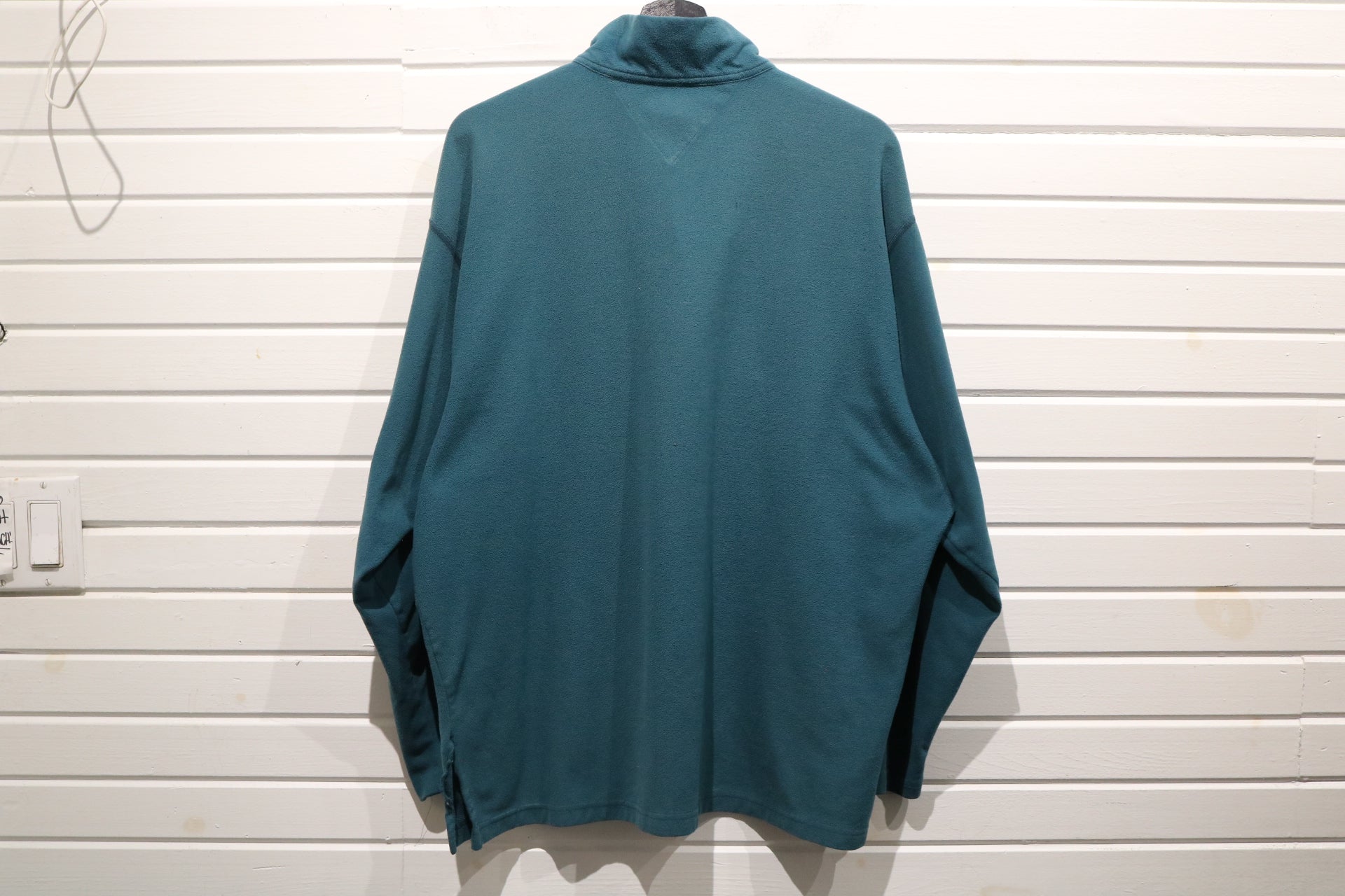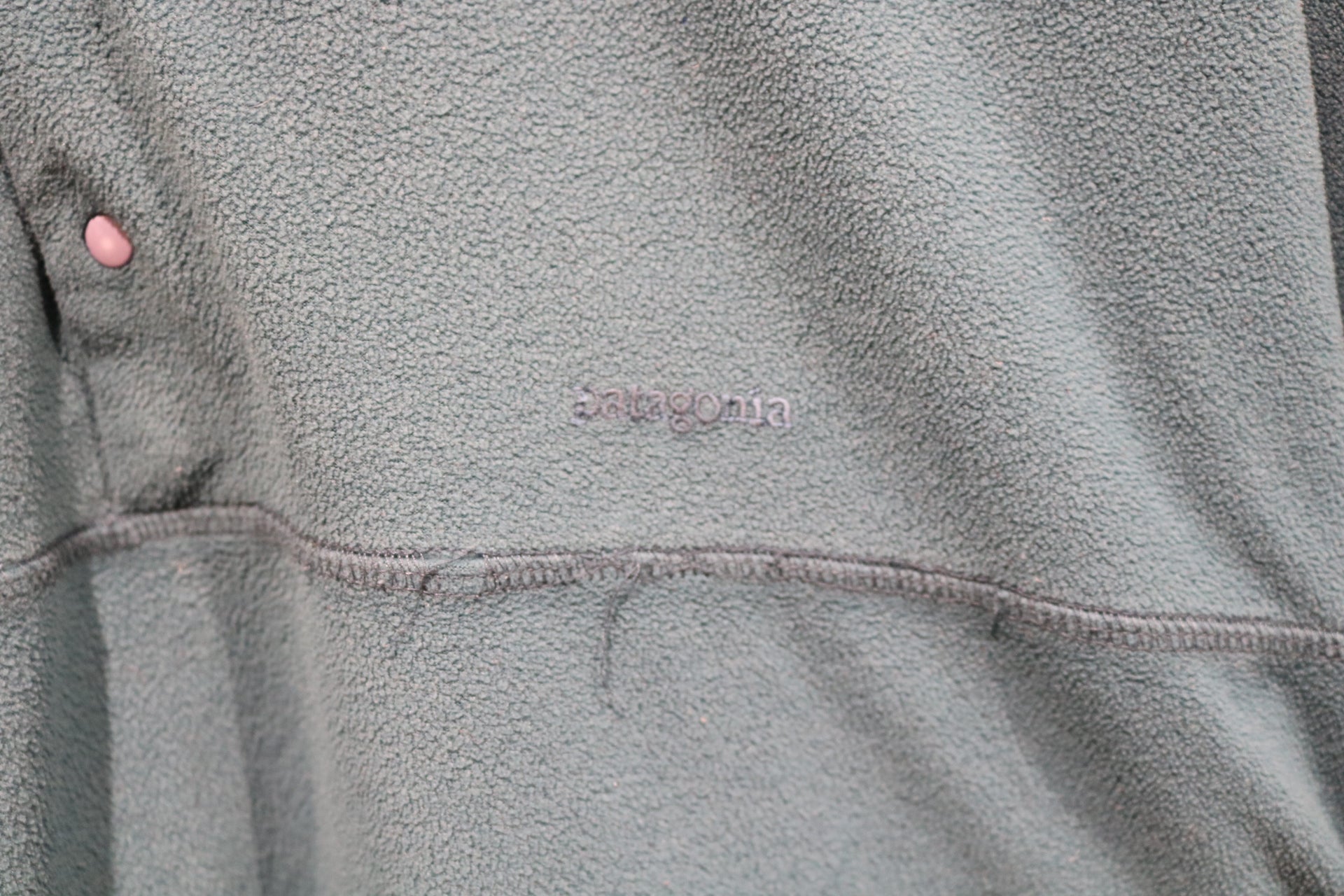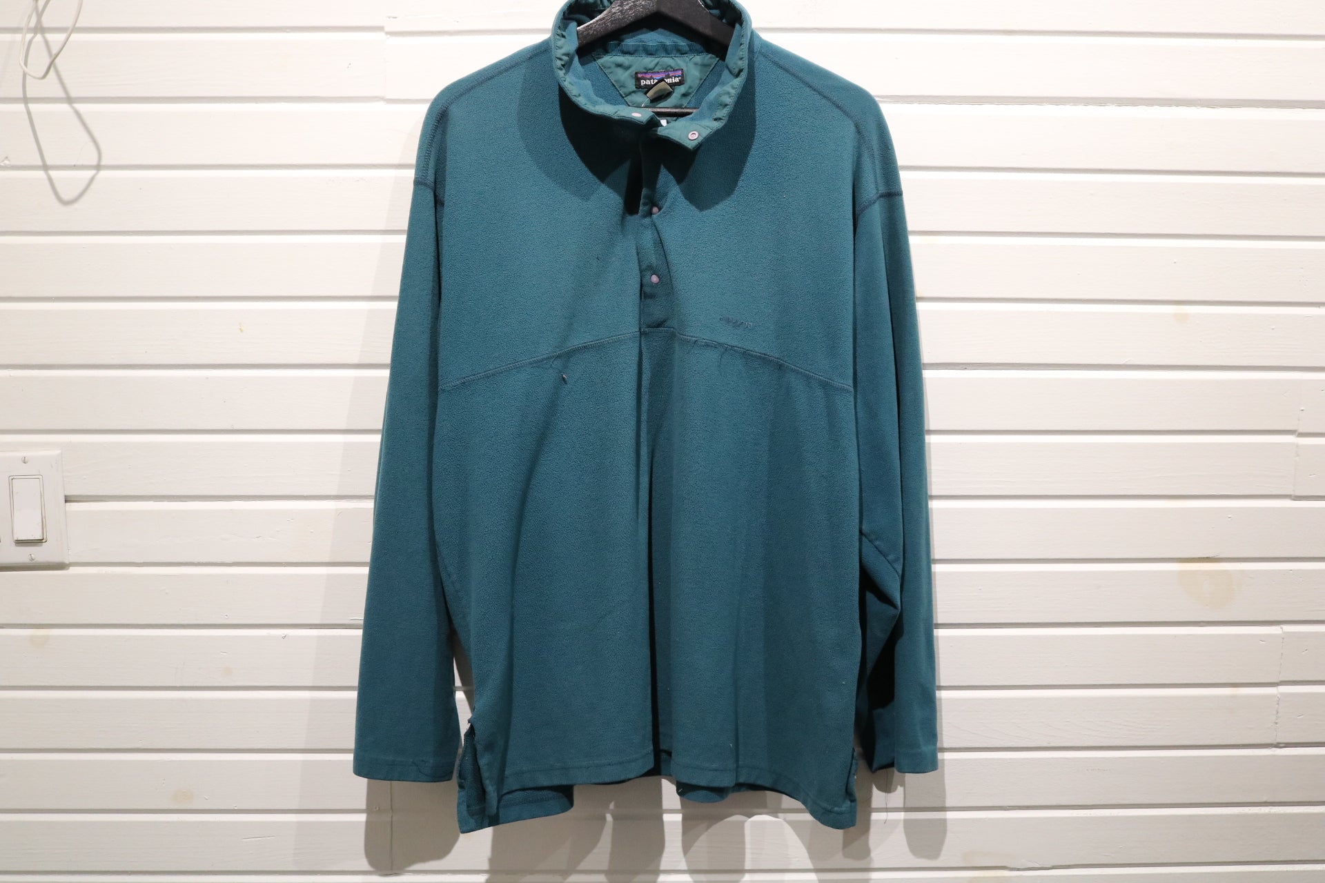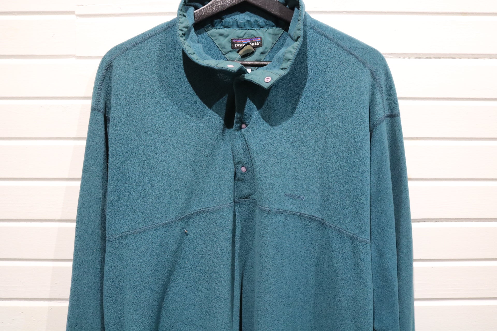 Vintage Patagonia teal fleece pullover with snap front and stand-up collar