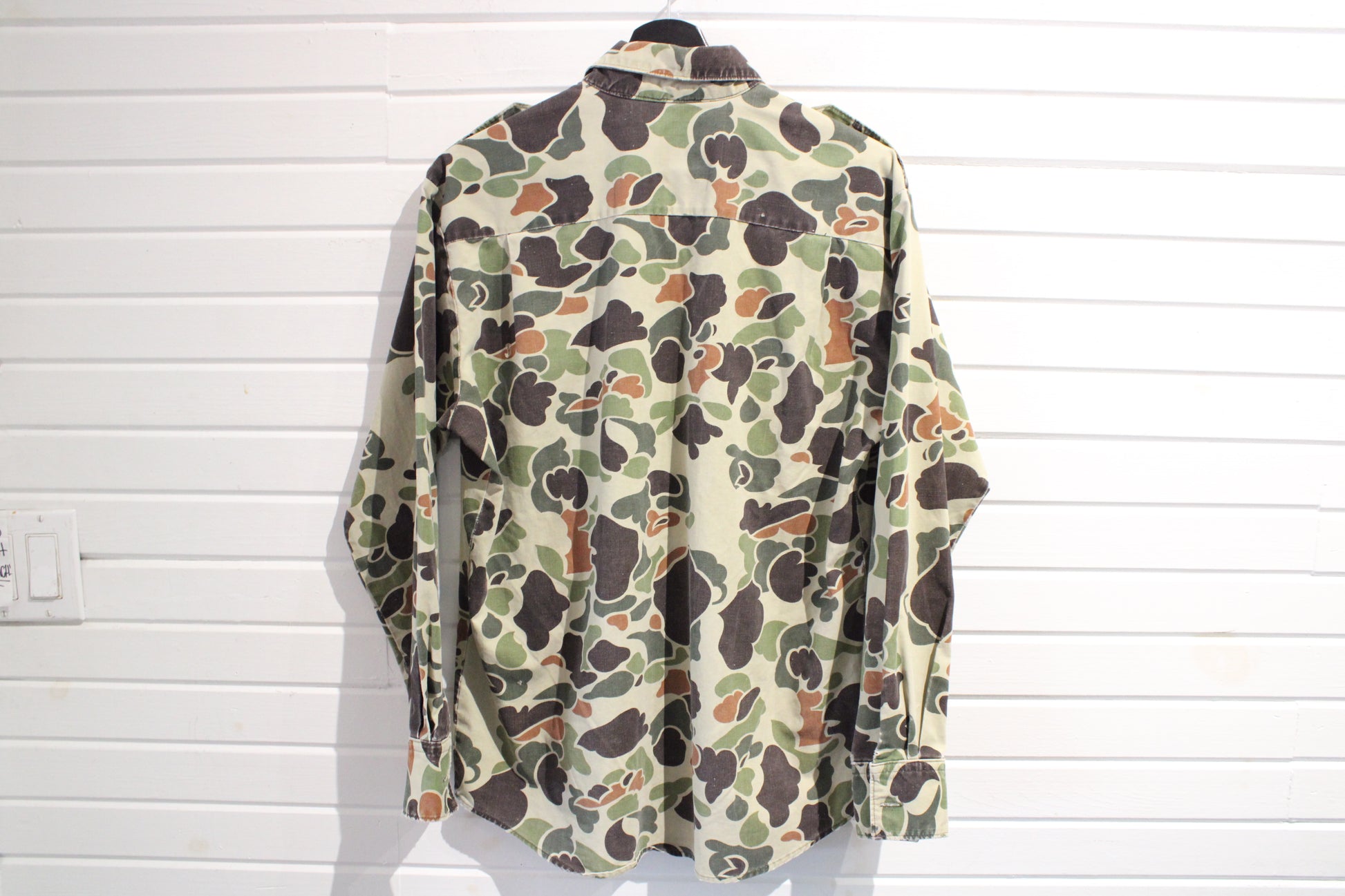 Walls Duck-Hunter Camo Button-Up Shirt | Vintage 1980s Outdoor Hunting Shirt | Classic Military Pattern Workwear