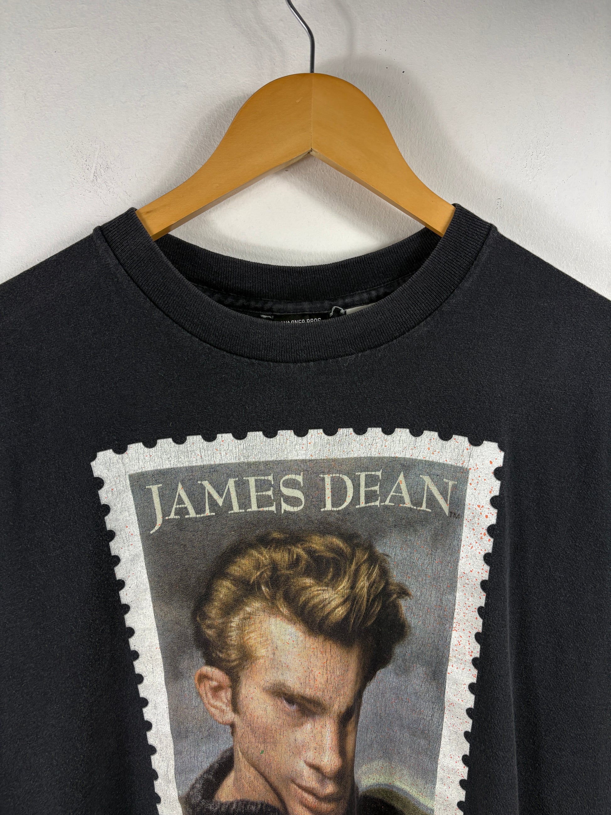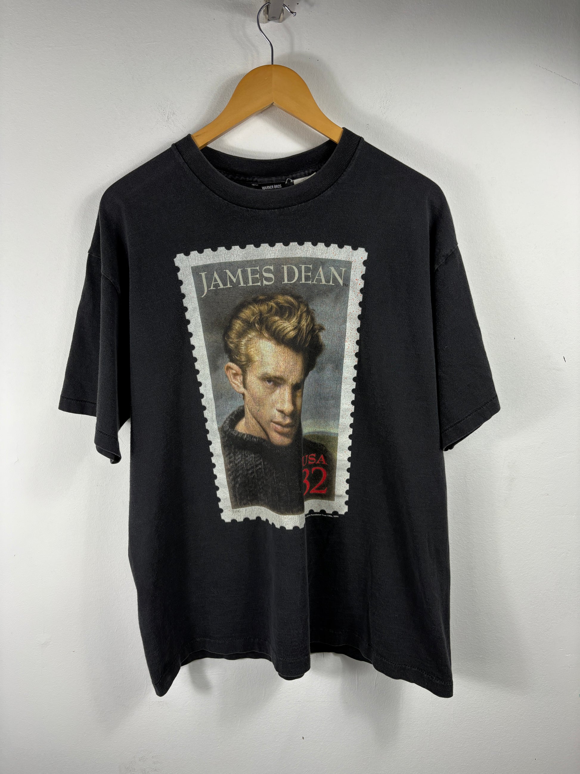 Vintage Warner-Bros James Dean T-shirt featuring a bold graphic inspired by a postage stamp.