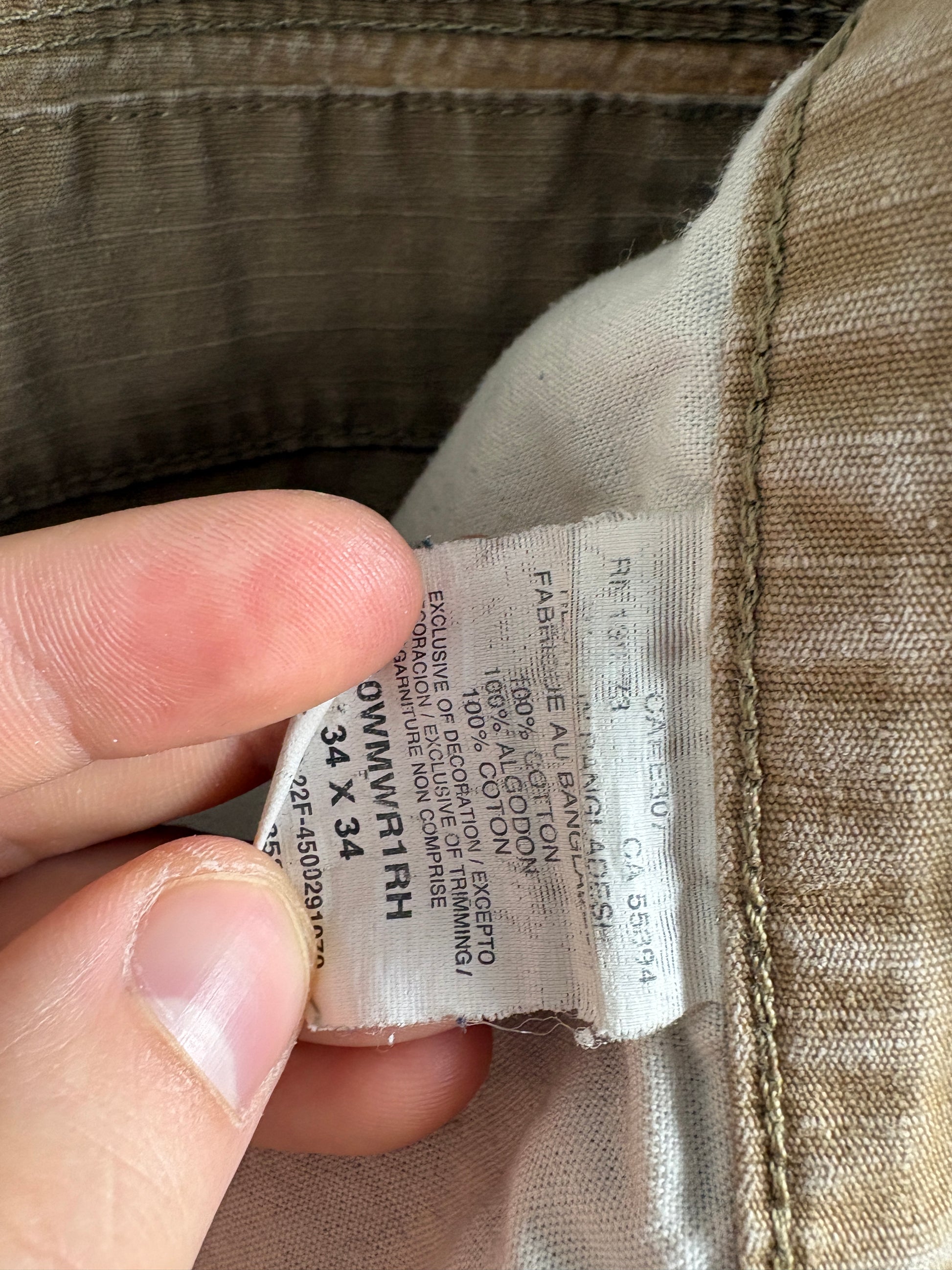 Classic Wrangler cargo work pants with durable canvas fabric and multiple utility pockets.
