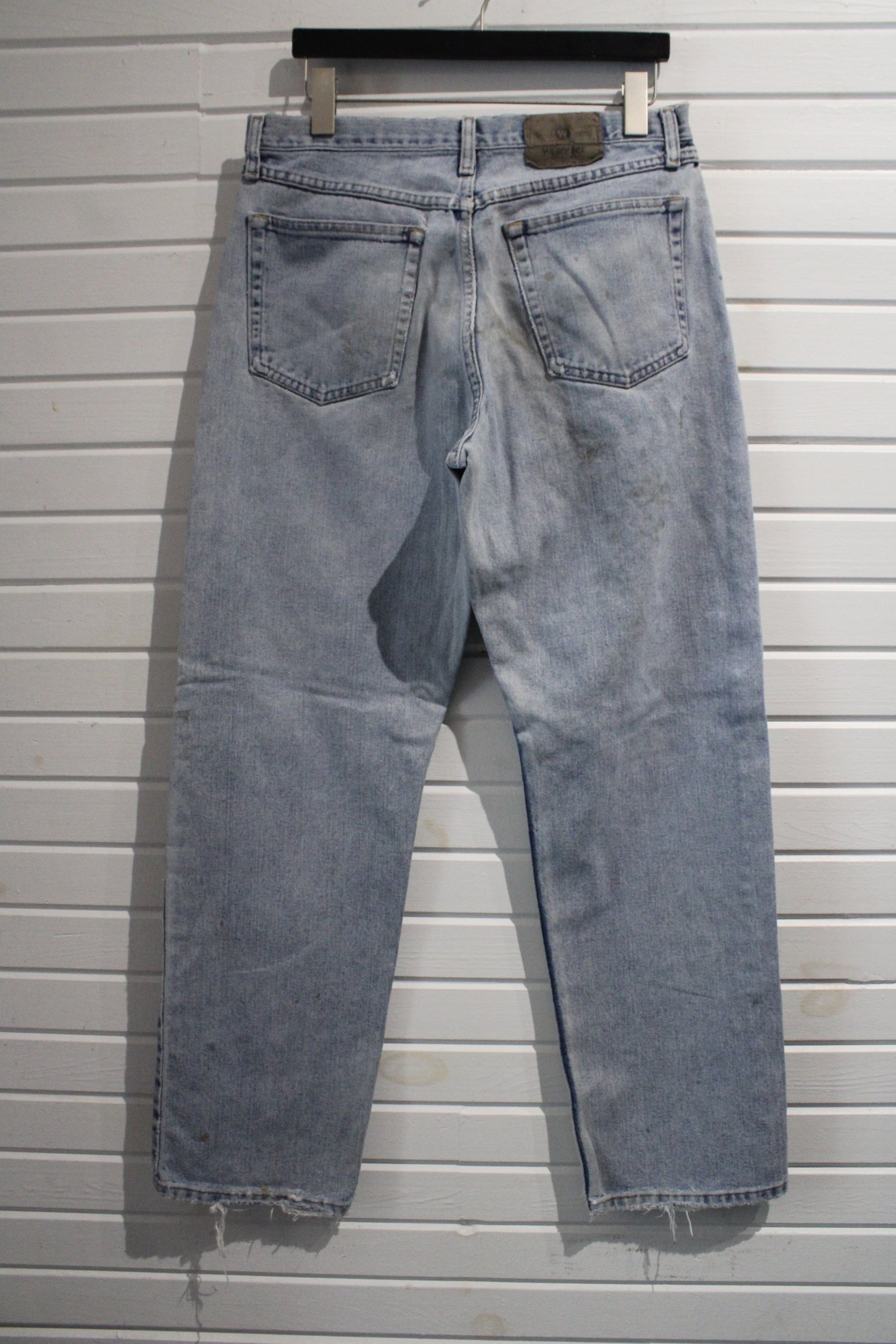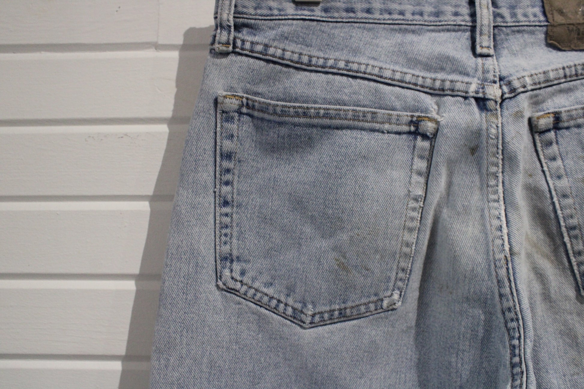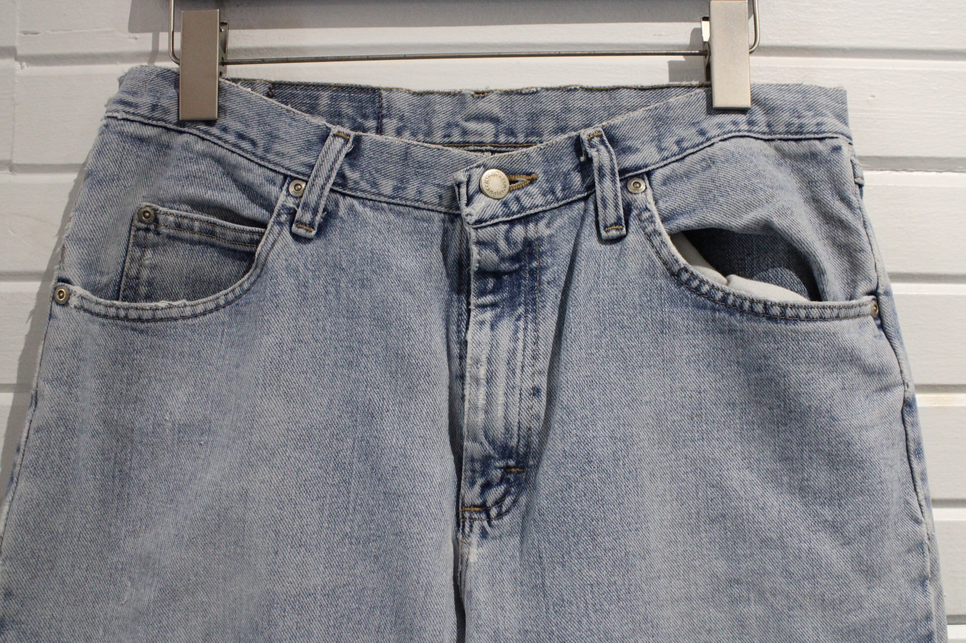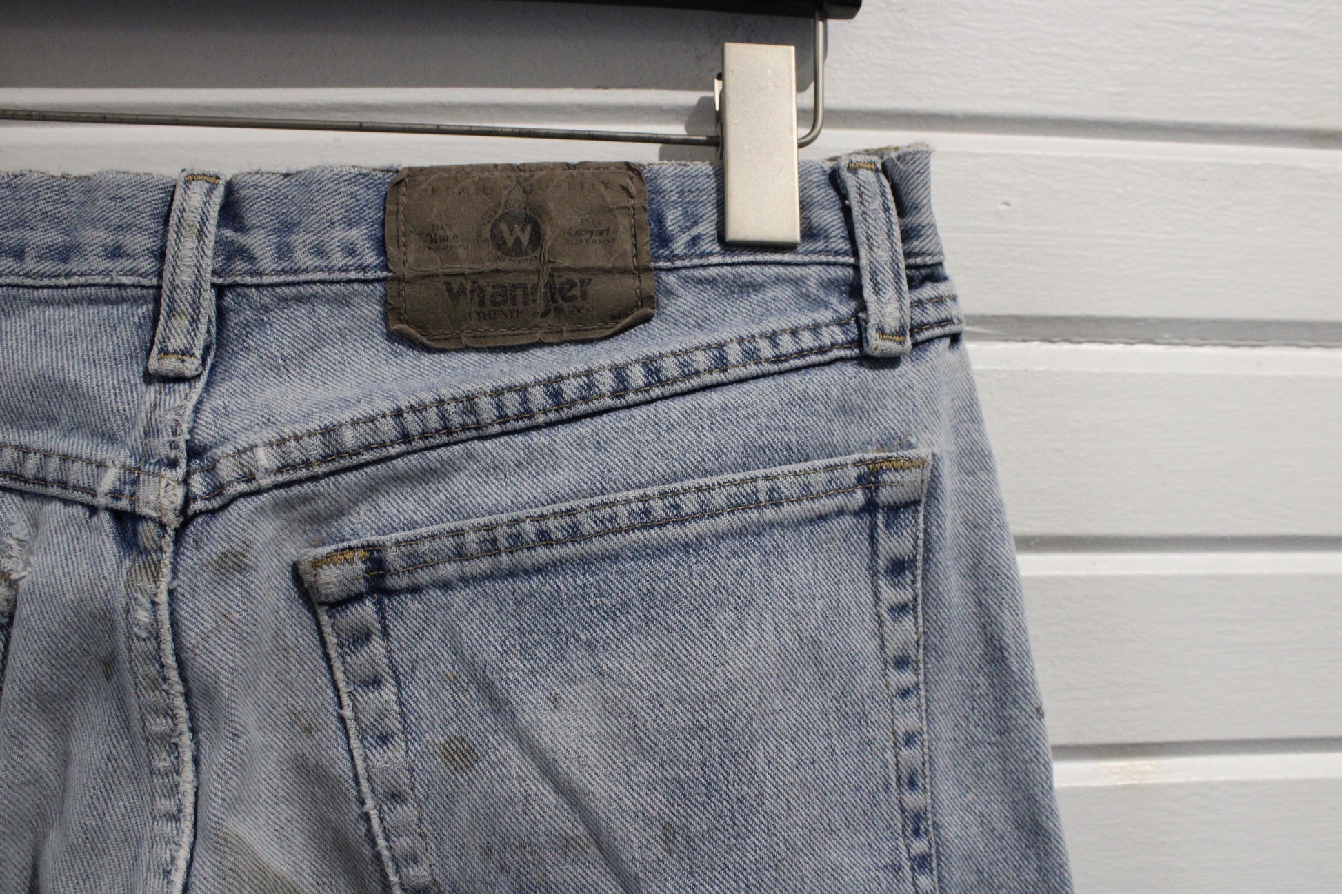 Wrangler Jeans | Vintage 1990s Light Wash Relaxed Fit Denim Pants | Distressed Straight Leg Jeans