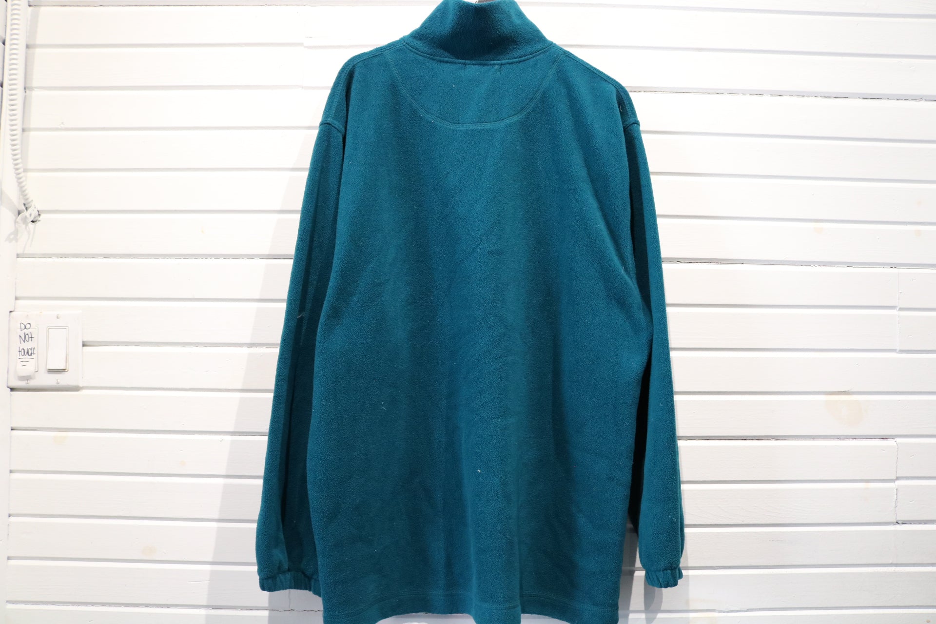 Yves-Saint-Laurent Fleece Pullover | Vintage 90s Teal Half-Zip Sweatshirt | Classic Logo Outdoor Layer