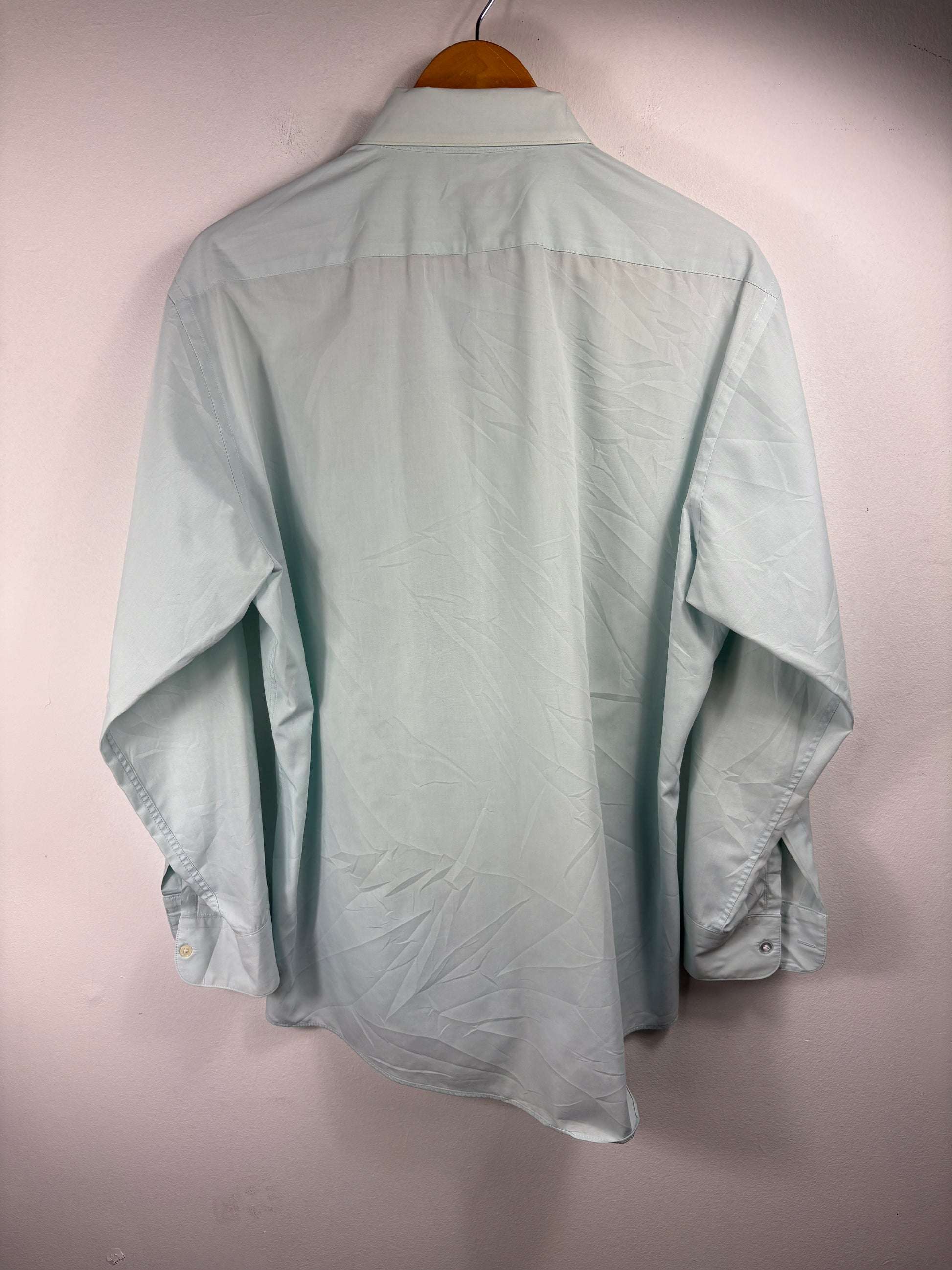 Yves-Saint-Laurent Shirt | Vintage 80s Pale Blue Button-Up Dress Shirt | Classic Long Sleeve Officewear